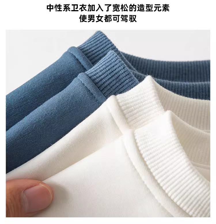 가을과 겨울 새로운 기모 두꺼운 스웨터 남자의 단색 따뜻한 둥근 목 플러스 사이즈 느슨한 인쇄 로고 학생 수업 옷