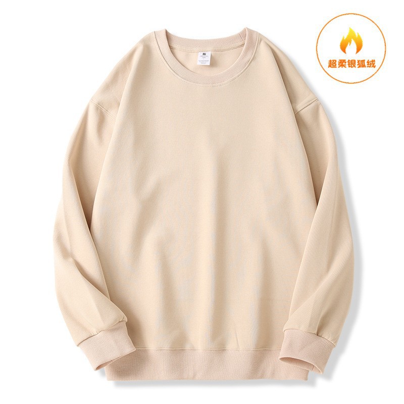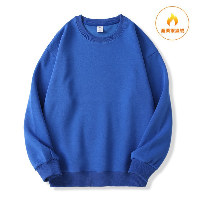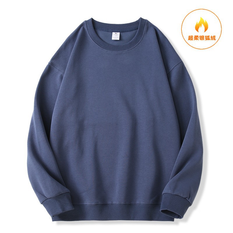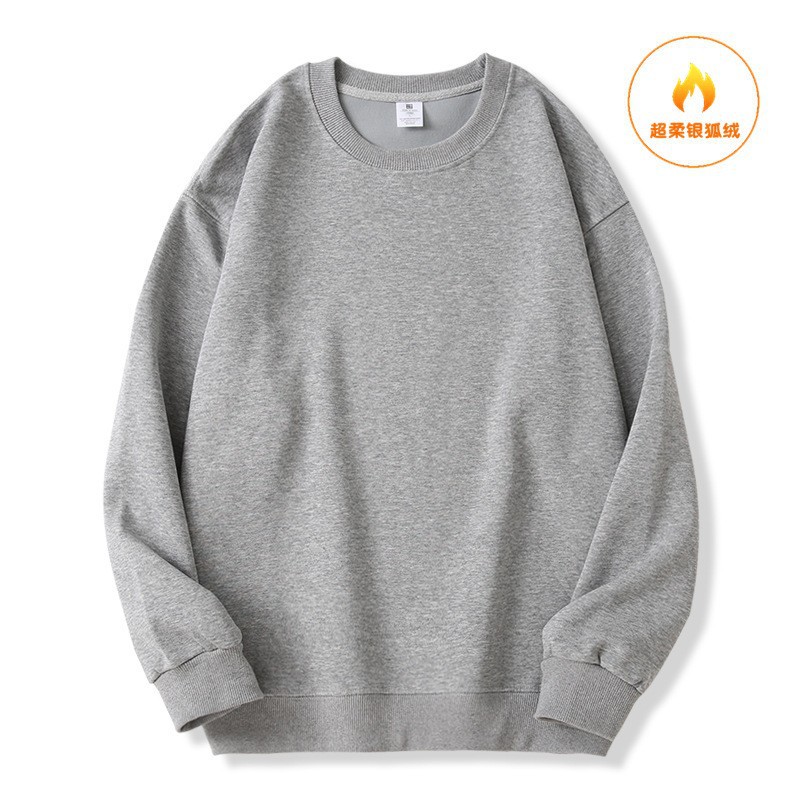 가을과 겨울 새로운 기모 두꺼운 스웨터 남자의 단색 따뜻한 둥근 목 플러스 사이즈 느슨한 인쇄 로고 학생 수업 옷스토어 가기