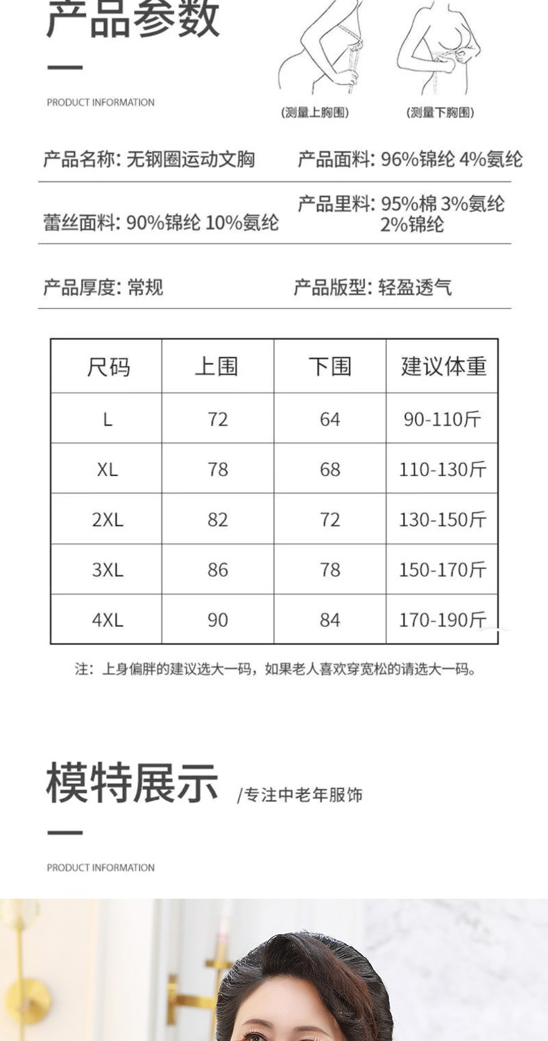 엄마의 속옷 플러스 사이즈 무선 브래지어 여성의 푸시 업 브라 조끼 스타일 중년 및 노인 브래지어 스포츠 속옷 여성스토어 가기