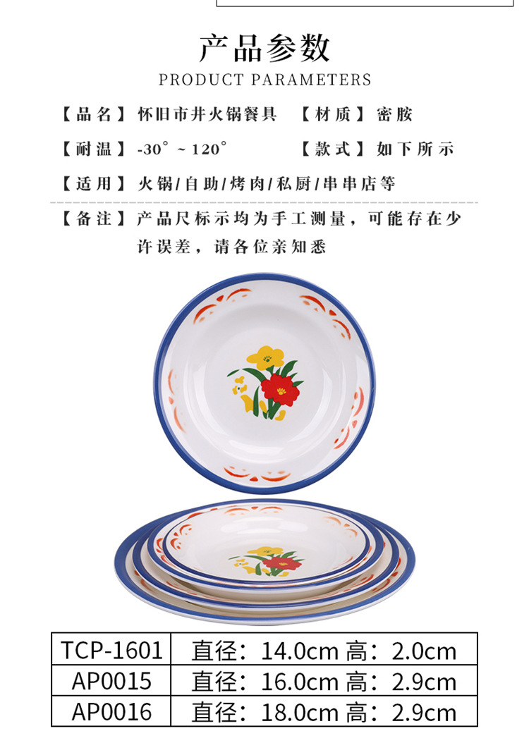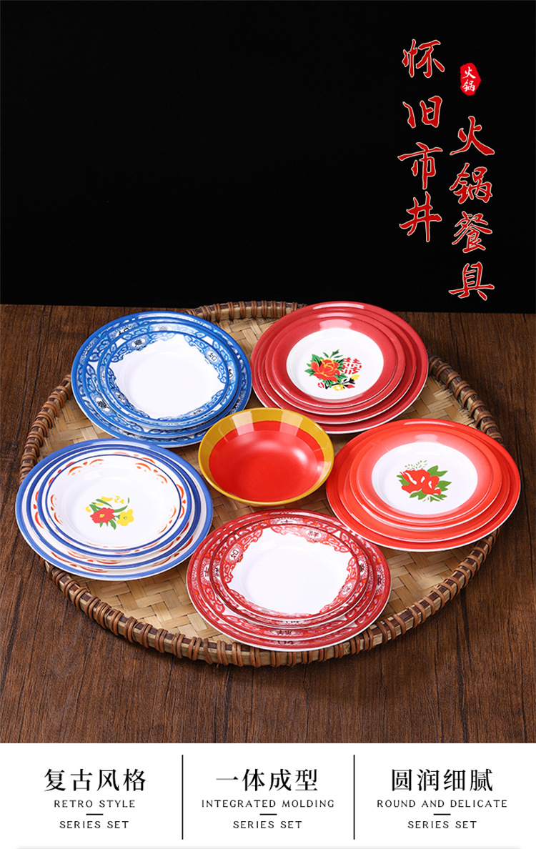 멜라민 빈티지 빈티지 모조 에나멜 마구간 요리 창조적 인 Shijing 냄비 레스토랑 반찬 간식 차가운 접시 접시 디스크