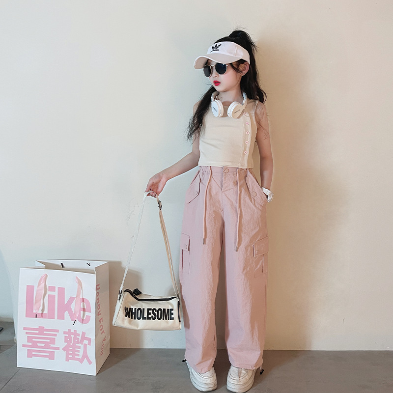 2024 새로운 여름 야외 땀을 흘리는 통기성 느슨한 캐주얼 멀티 포켓 오버롤 소녀 아메리칸 캐주얼 바지