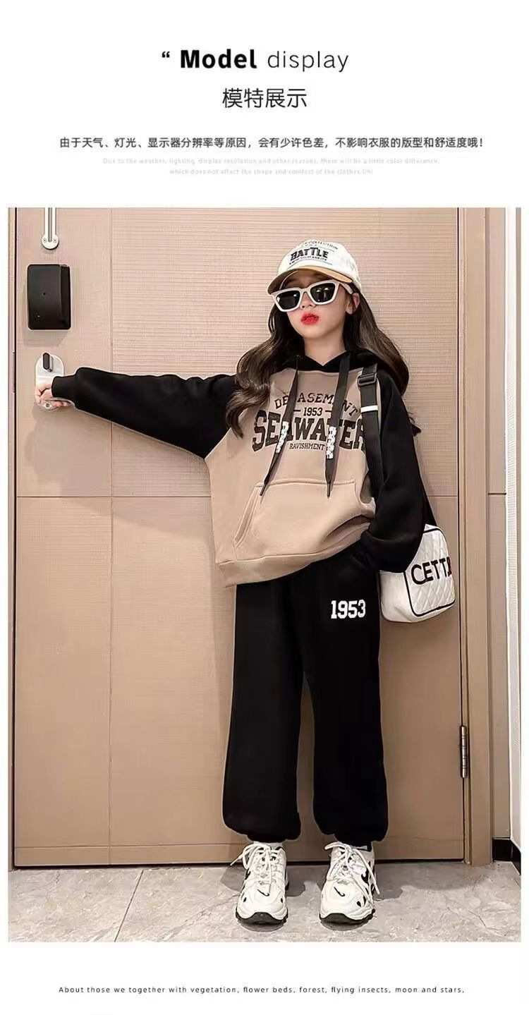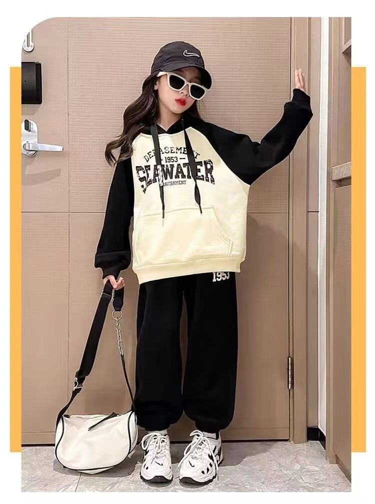 소녀 패션 스웨트 셔츠 세트 가을 2024 새로운 서양식 봄과 가을 중 큰 어린이 레저 스포츠 투피스 세트