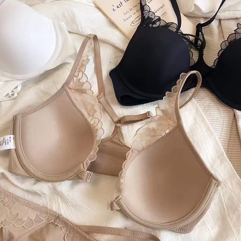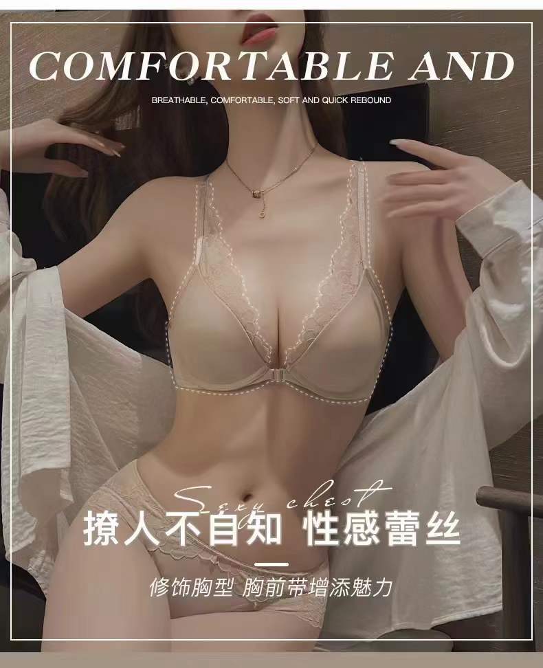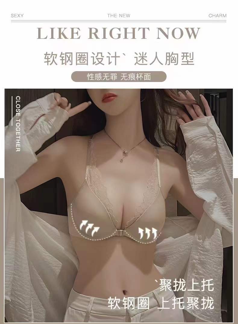 전면 버클 뷰티 백 얇은 프랑스 섹시한 브래지어 세트 부드러운 스틸 링 처짐 방지 광택 원활한 레이스 속옷스토어 가기