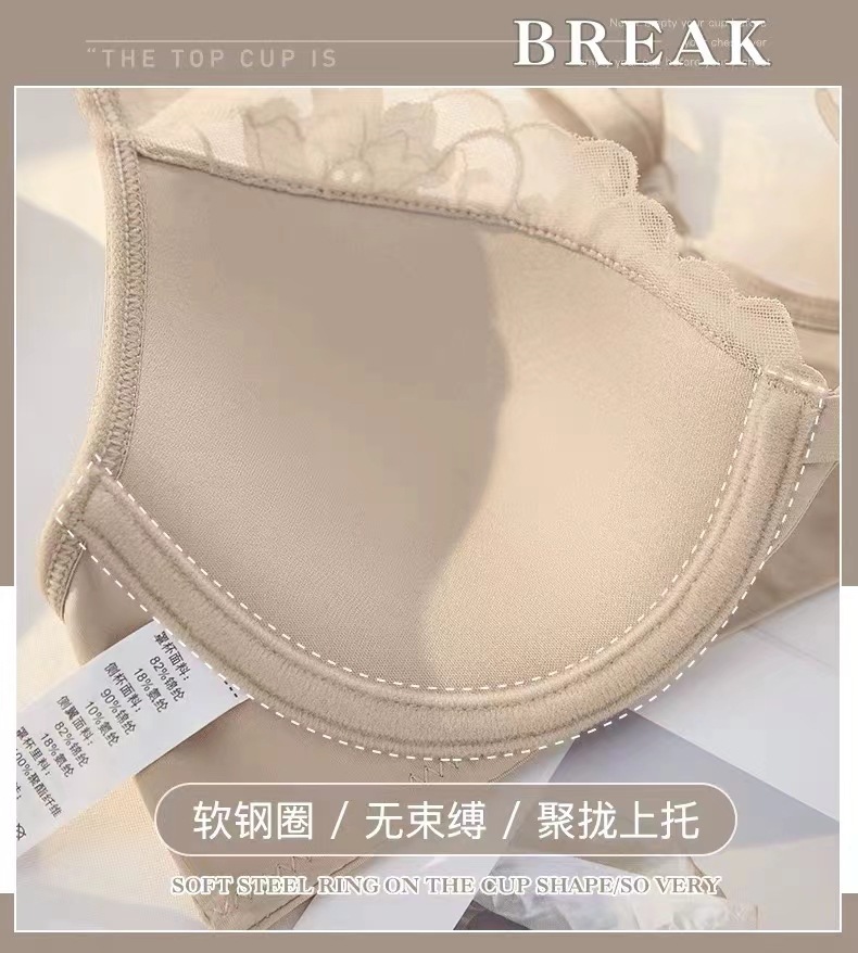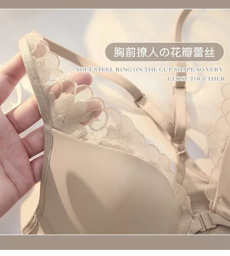 전면 버클 뷰티 백 얇은 프랑스 섹시한 브래지어 세트 부드러운 스틸 링 처짐 방지 광택 원활한 레이스 속옷