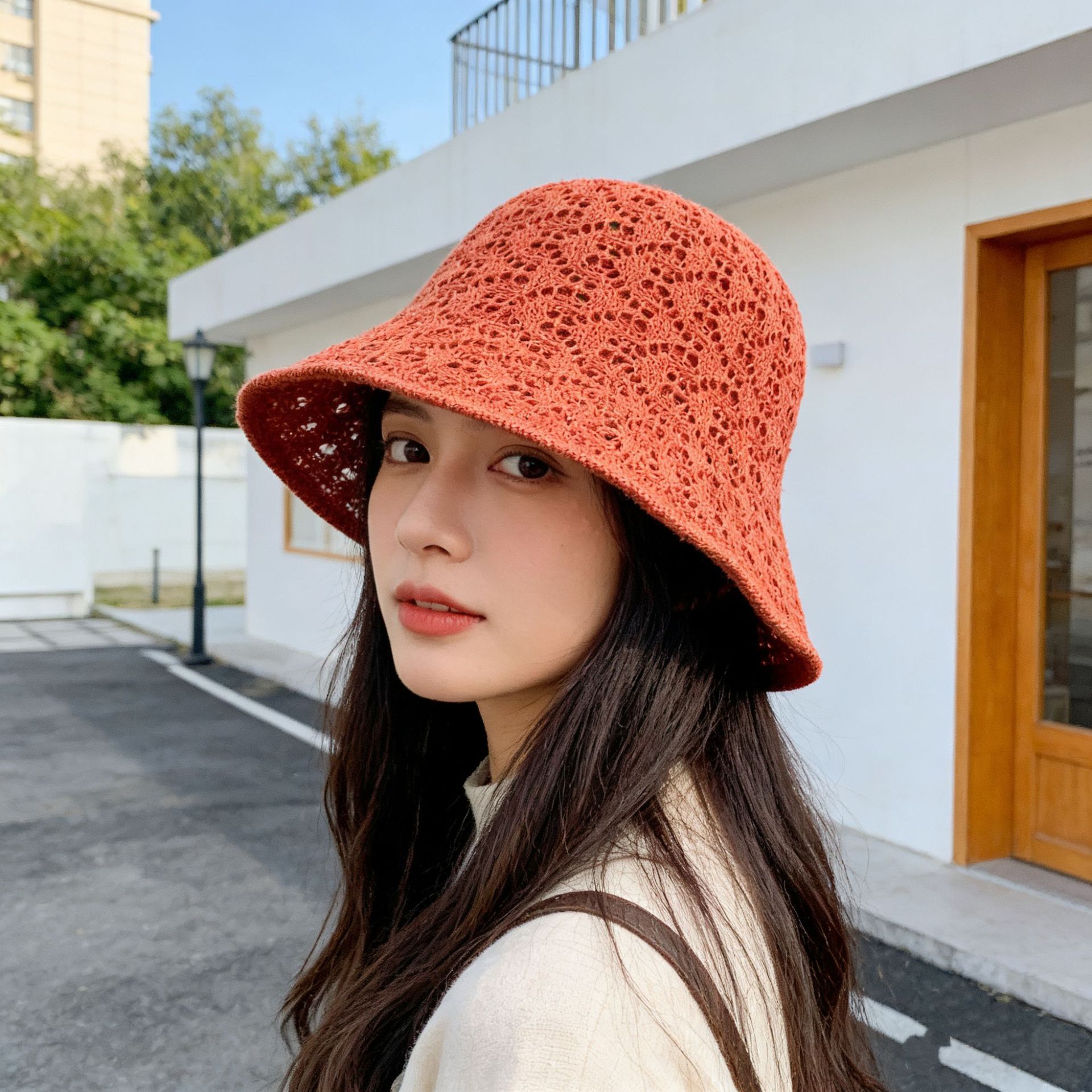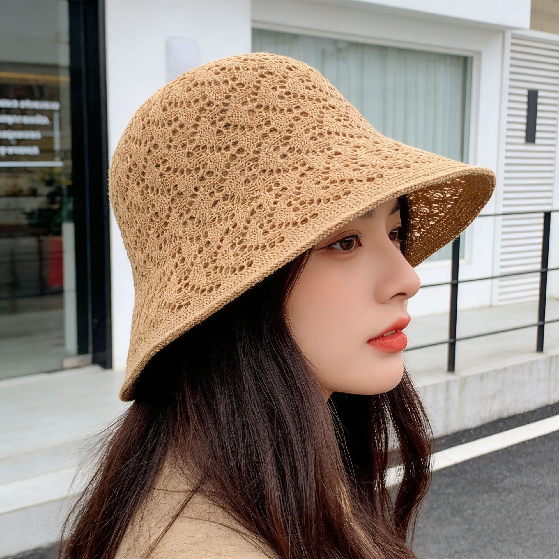 여름 한국식 여성용 자외선 차단 모자, 접이식 속이 빈 밀짚 어부 모자, 야외 해변용 태양 모자스토어 가기