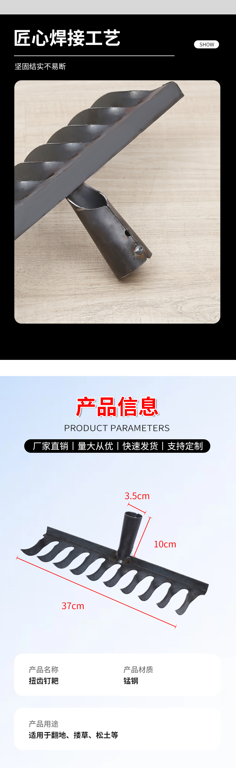 농업 갈퀴, 느슨한 토양, 다기능 갈퀴, 야채 심기, 5 개 이빨, 7 개 이빨 갈퀴, 올 스틸 갈퀴, 강철 갈퀴스토어 가기