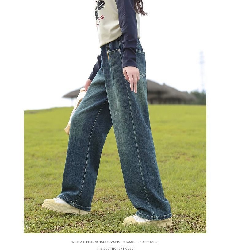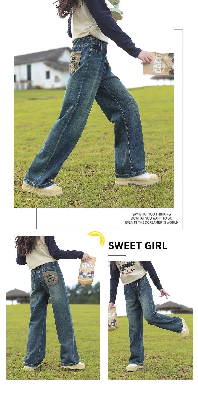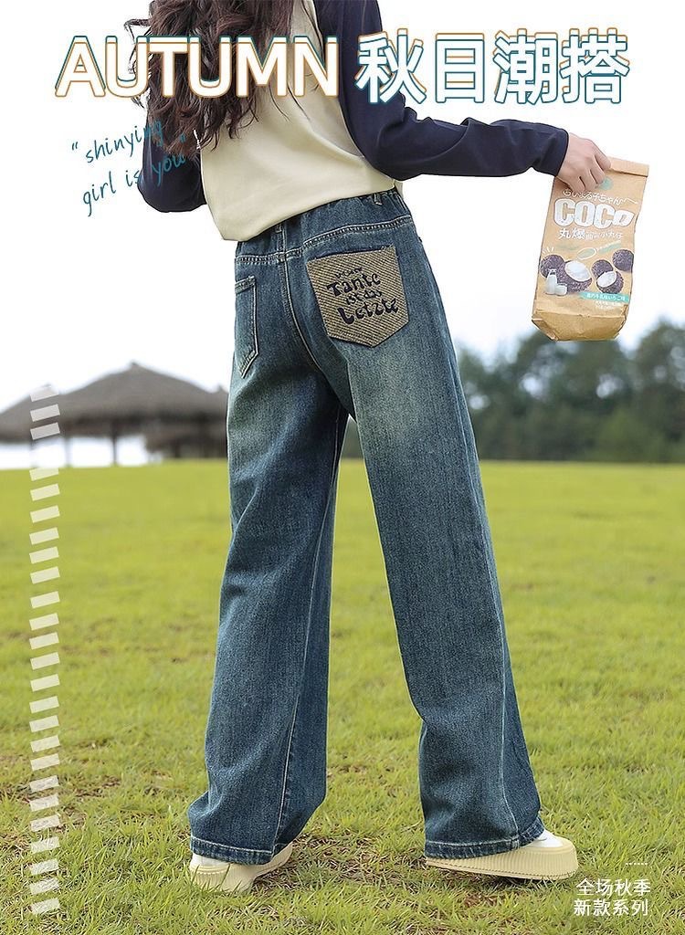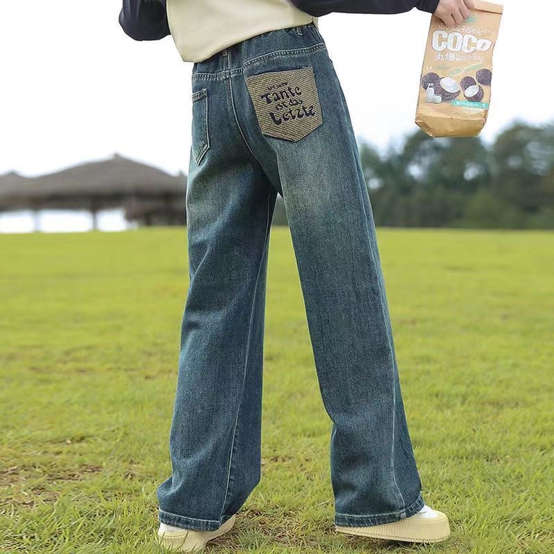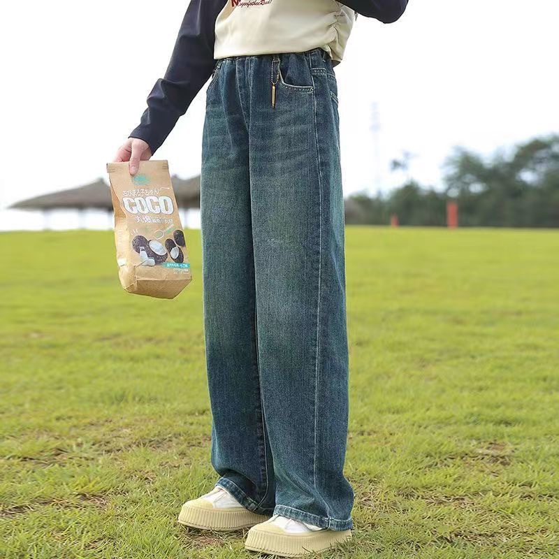 소녀 청바지 봄과 가을 2025 새로운 어린이 서양식 중대형 어린이 캐주얼 와이드 레그 바지 스트레이트 원피스 바지스토어 가기