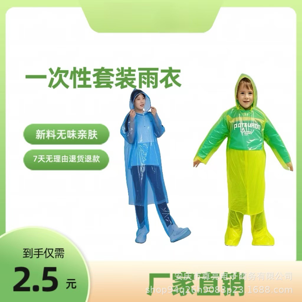 일회용 어린이 비옷 세트 우비 바지 신발 커버 방비 야외 표류 전신 방수 여행 분할스토어 가기