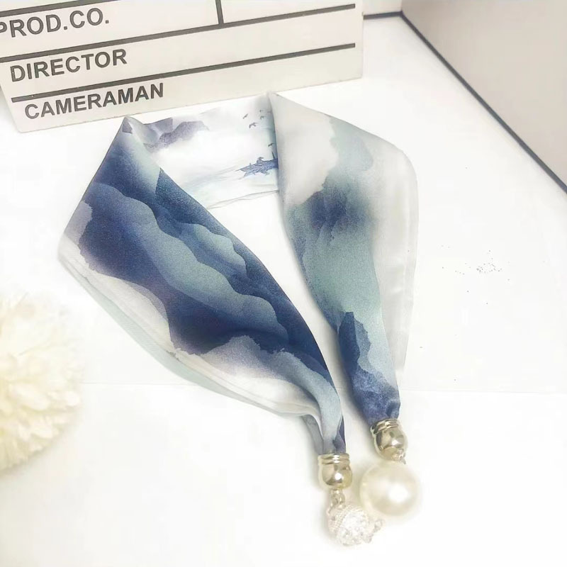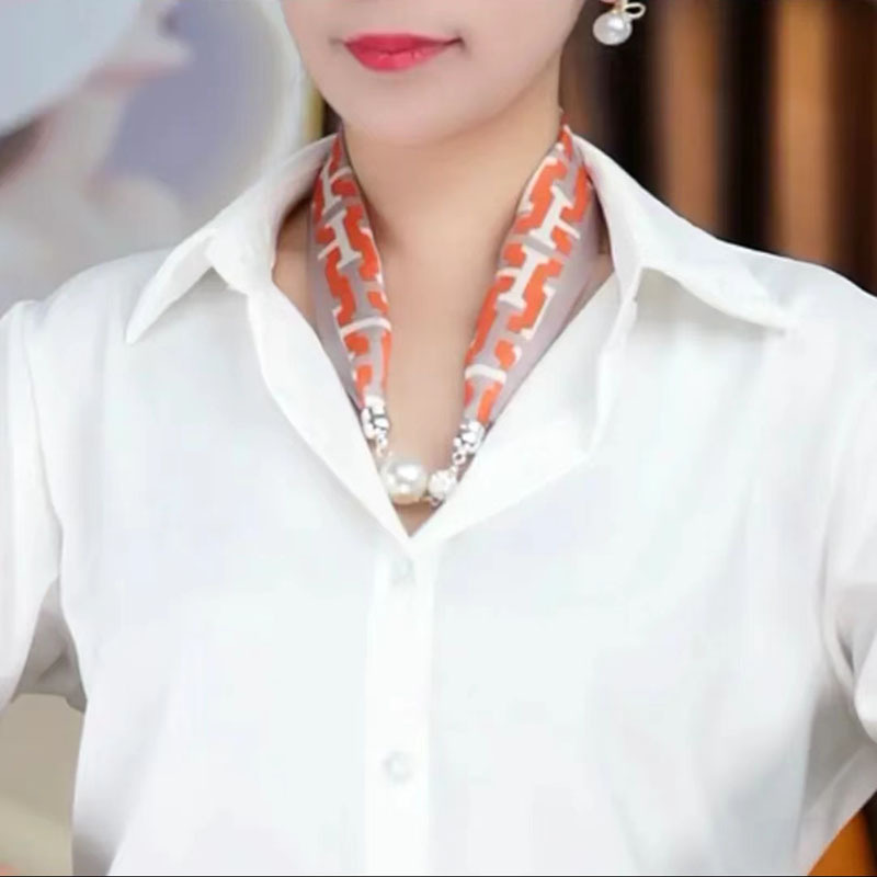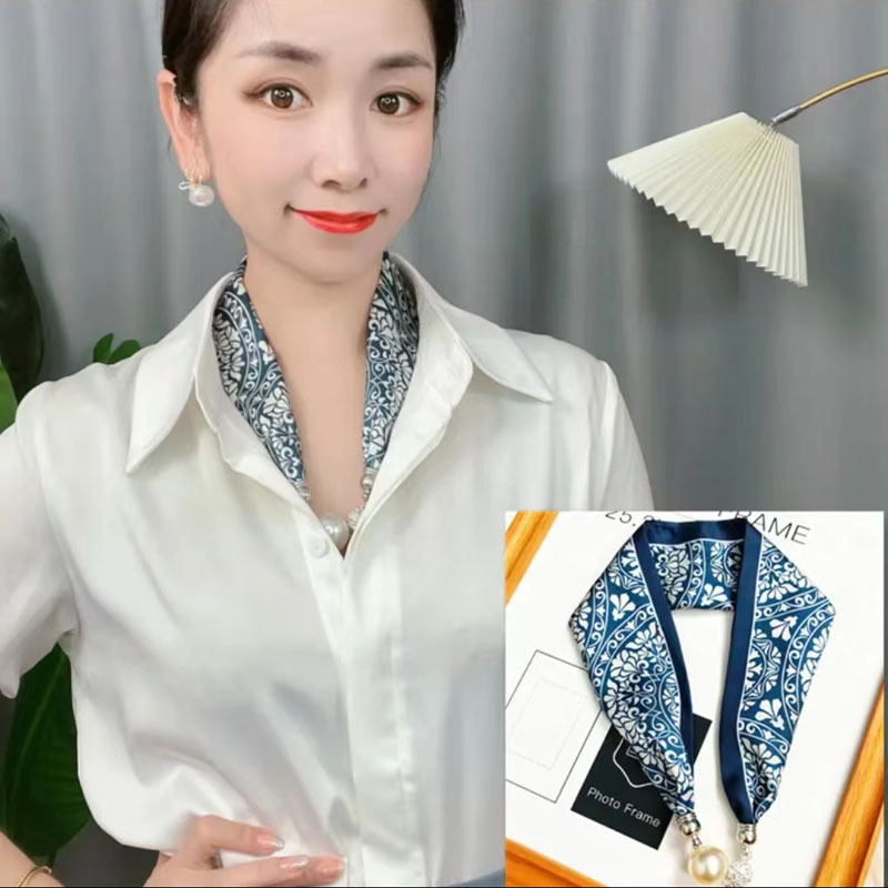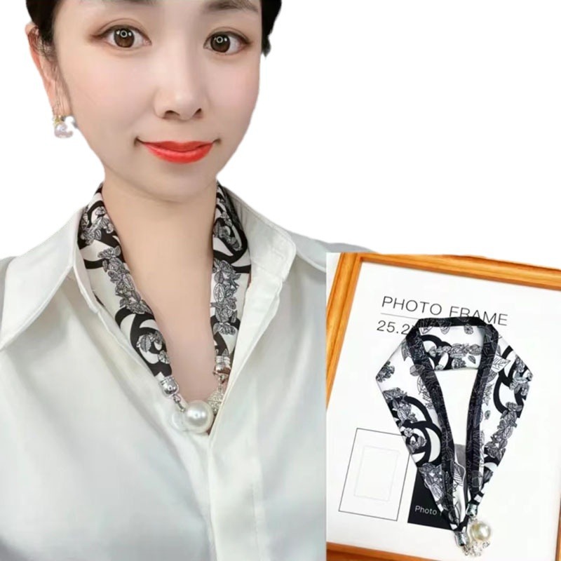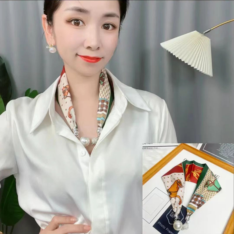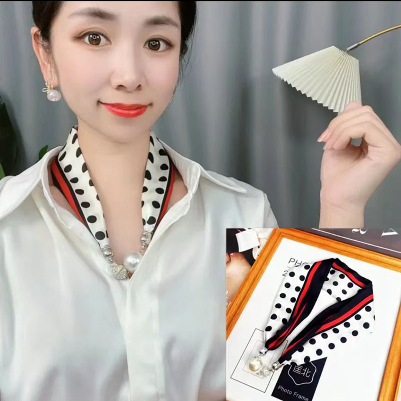 2024 새로운 우아한 다이아몬드 목걸이 실크 스카프 롤로 실크 스카프 같은 스타일의 마그네틱 버클 작은 목 보호 다기능 스카프 도매
