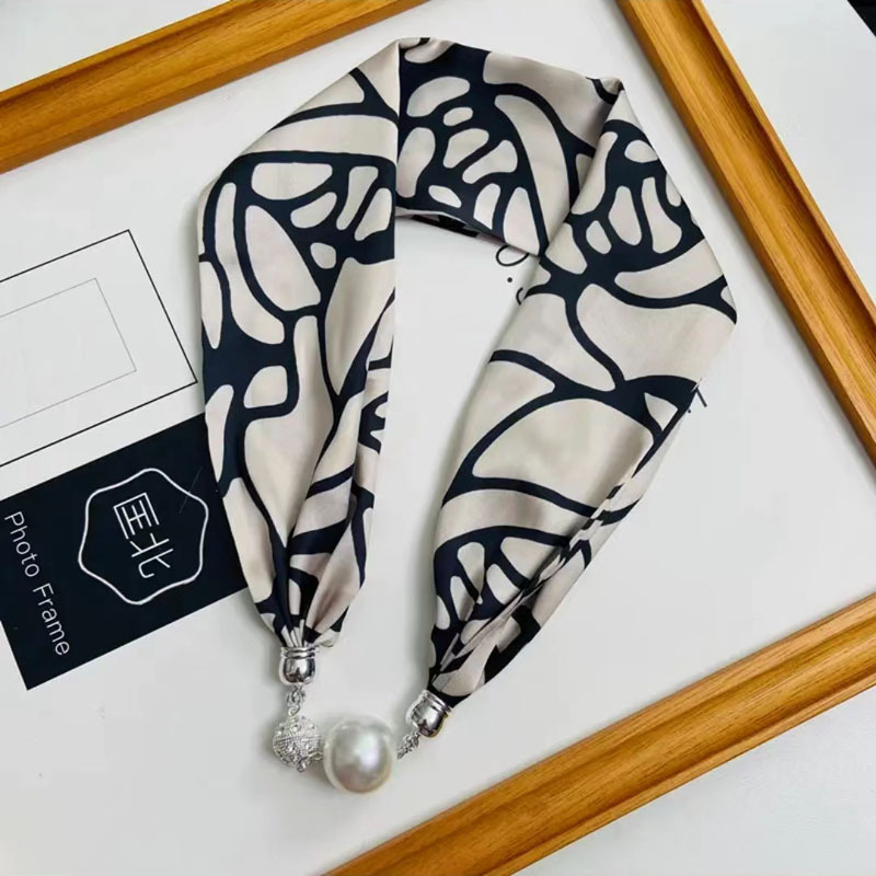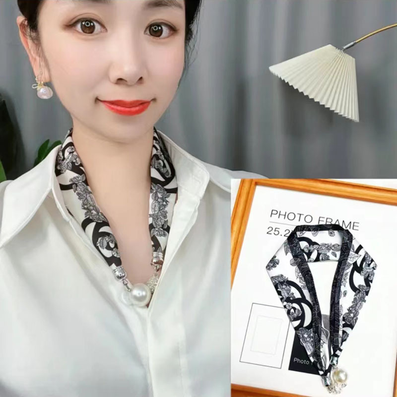 2024 새로운 우아한 다이아몬드 목걸이 실크 스카프 롤로 실크 스카프 같은 스타일의 마그네틱 버클 작은 목 보호 다기능 스카프 도매스토어 가기