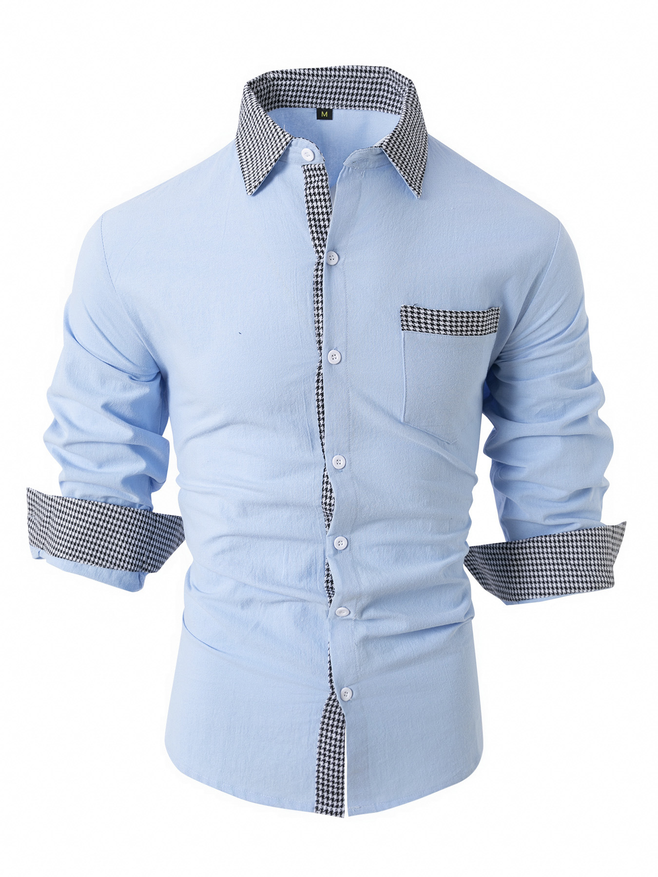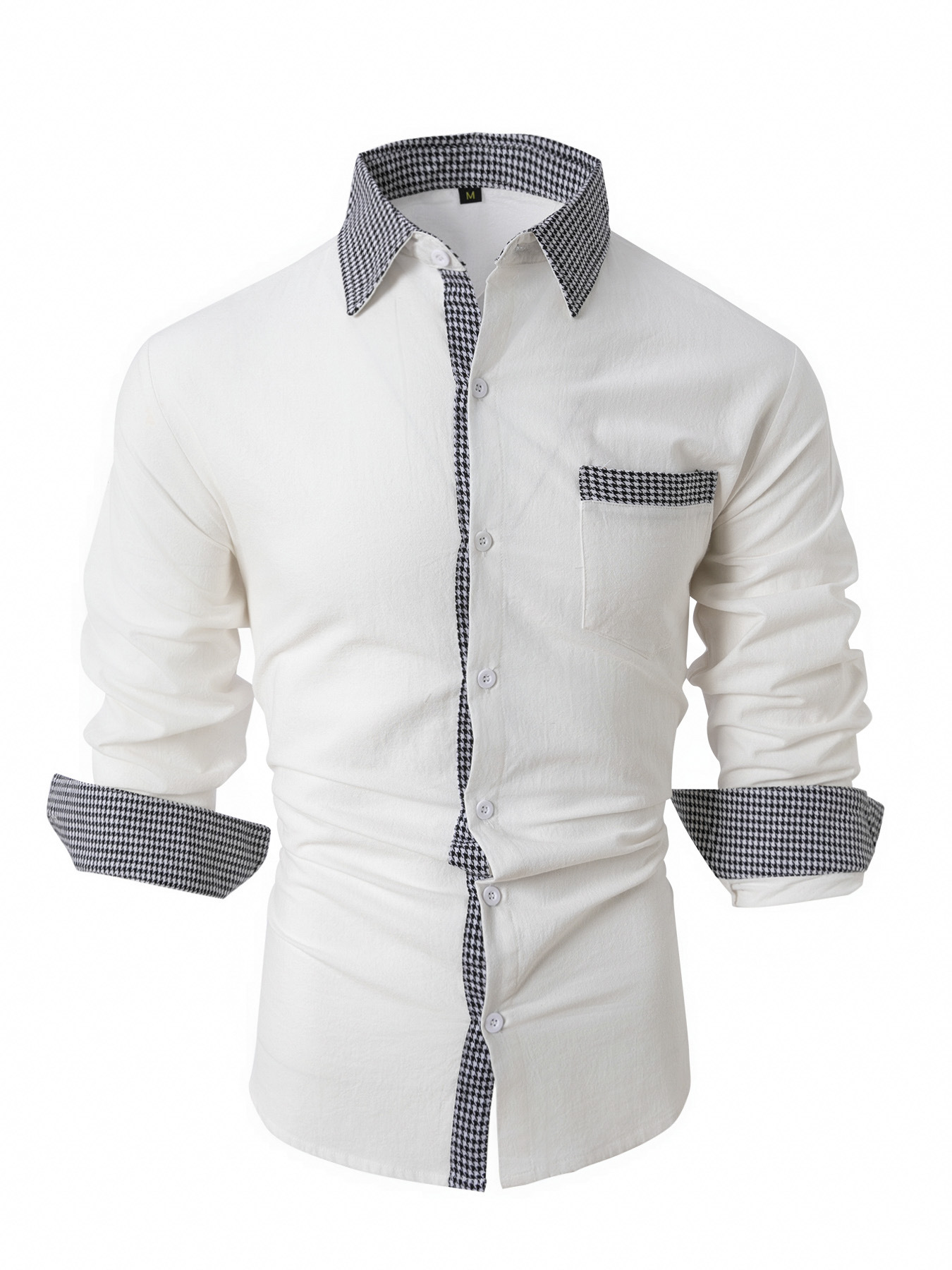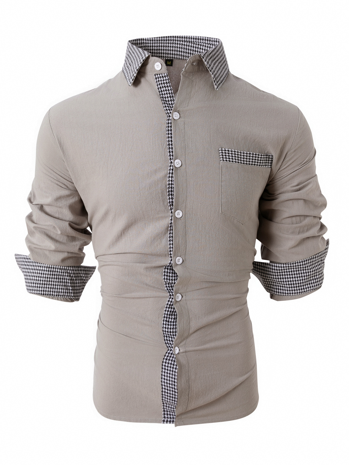 2024 새로운 크로스 보더면 및 린넨 남성용 체크 무늬 스티칭 셔츠 아마존 유럽 사이즈 남성용 캐주얼 긴팔 셔츠