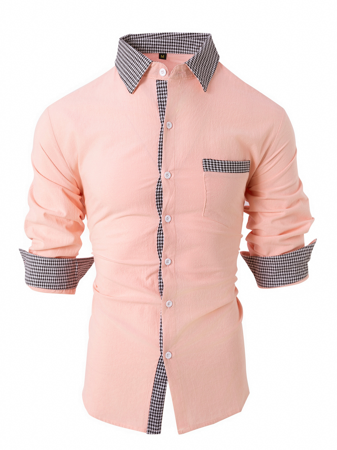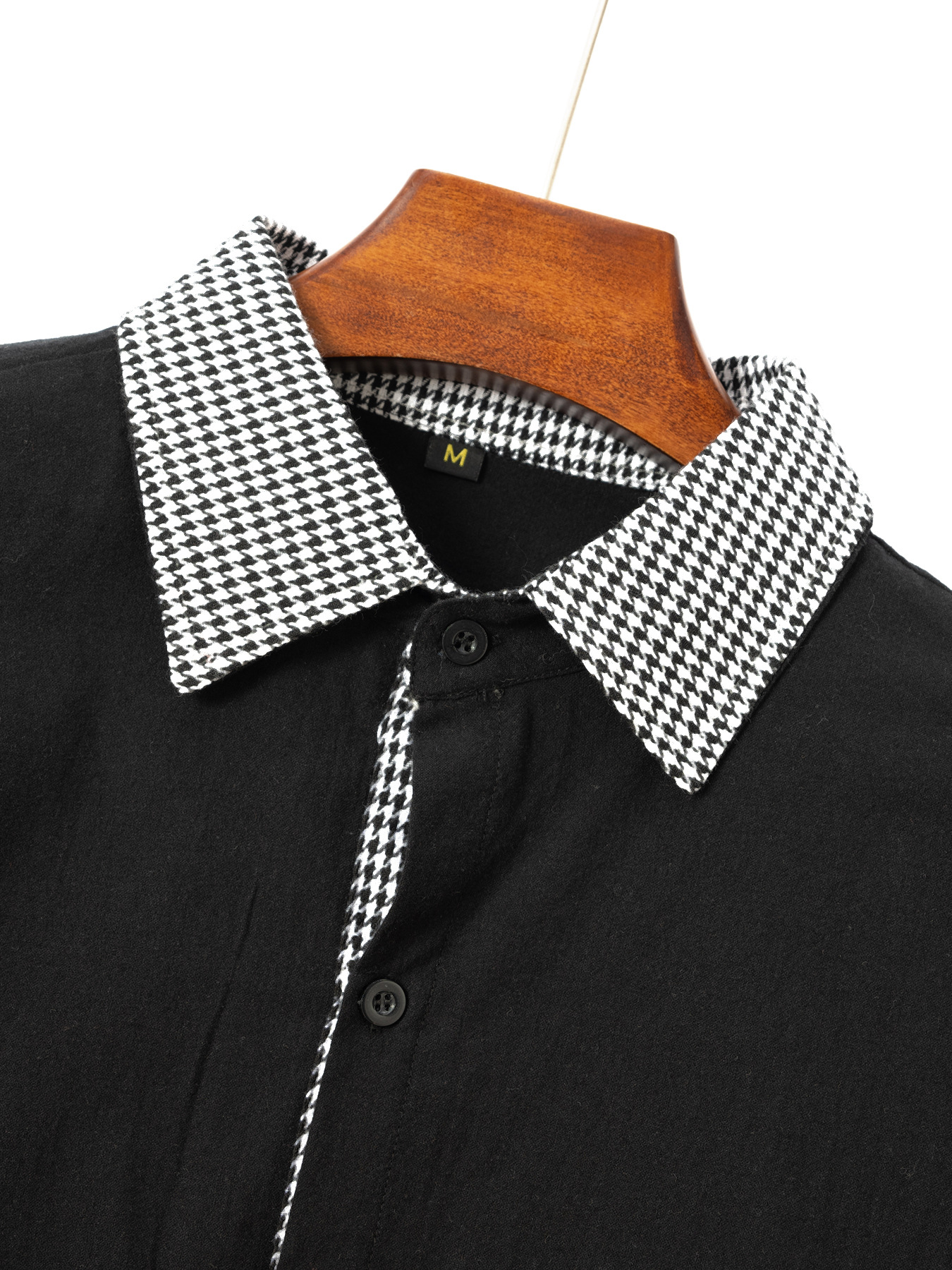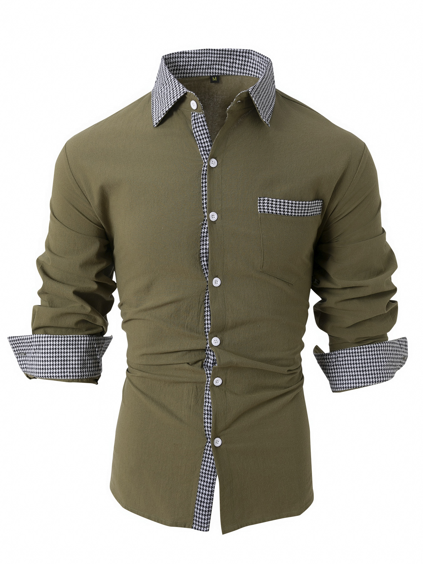 2024 새로운 크로스 보더면 및 린넨 남성용 체크 무늬 스티칭 셔츠 아마존 유럽 사이즈 남성용 캐주얼 긴팔 셔츠