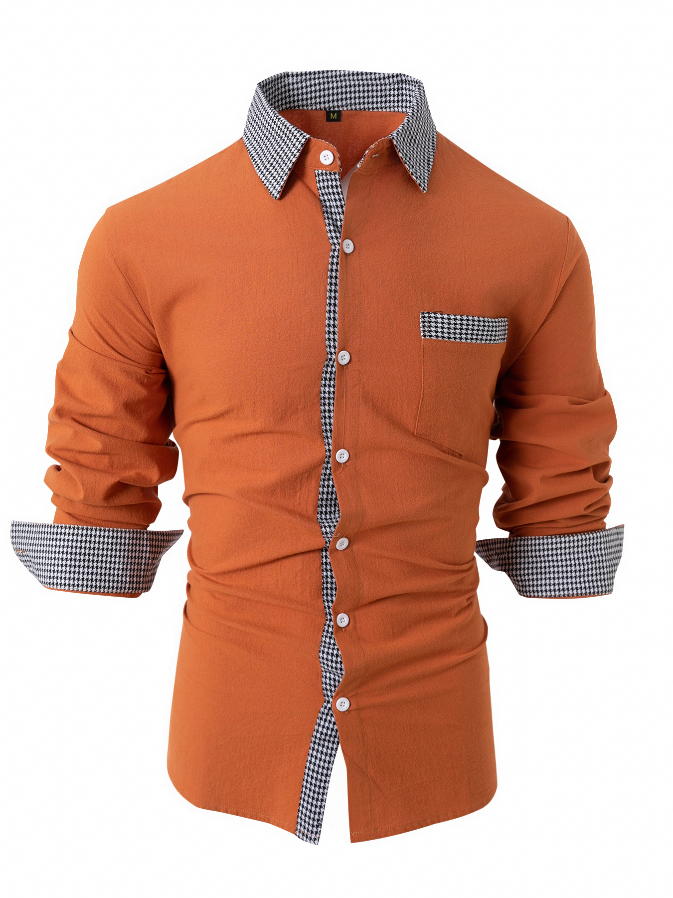 2024 새로운 크로스 보더면 및 린넨 남성용 체크 무늬 스티칭 셔츠 아마존 유럽 사이즈 남성용 캐주얼 긴팔 셔츠스토어 가기