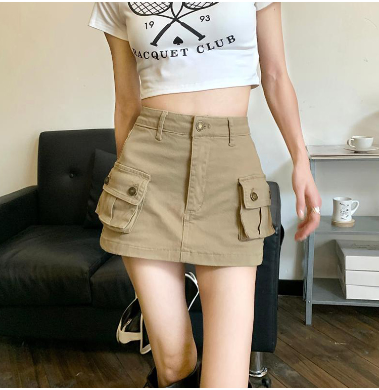 미국식 카키 작업복 데님 스커트 여성 가을과 겨울 칼집 A 라인 짧은 치마 스커트 작은 bm culottes