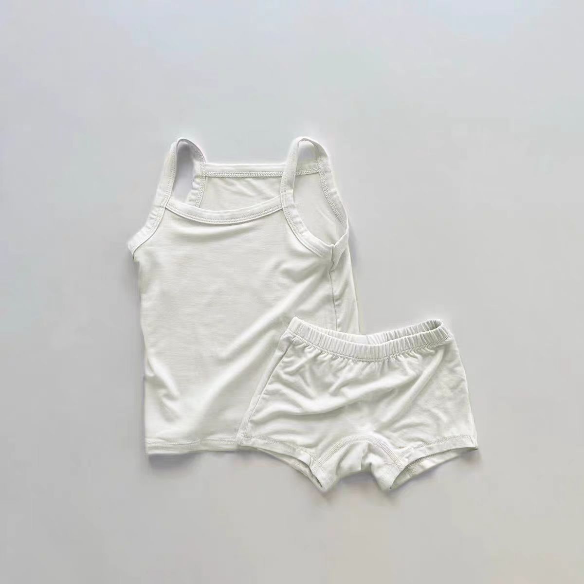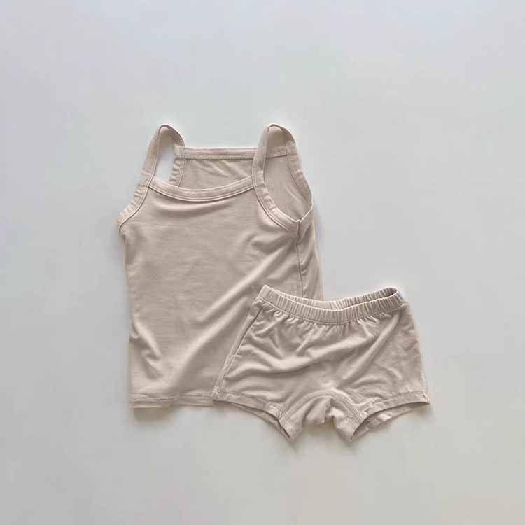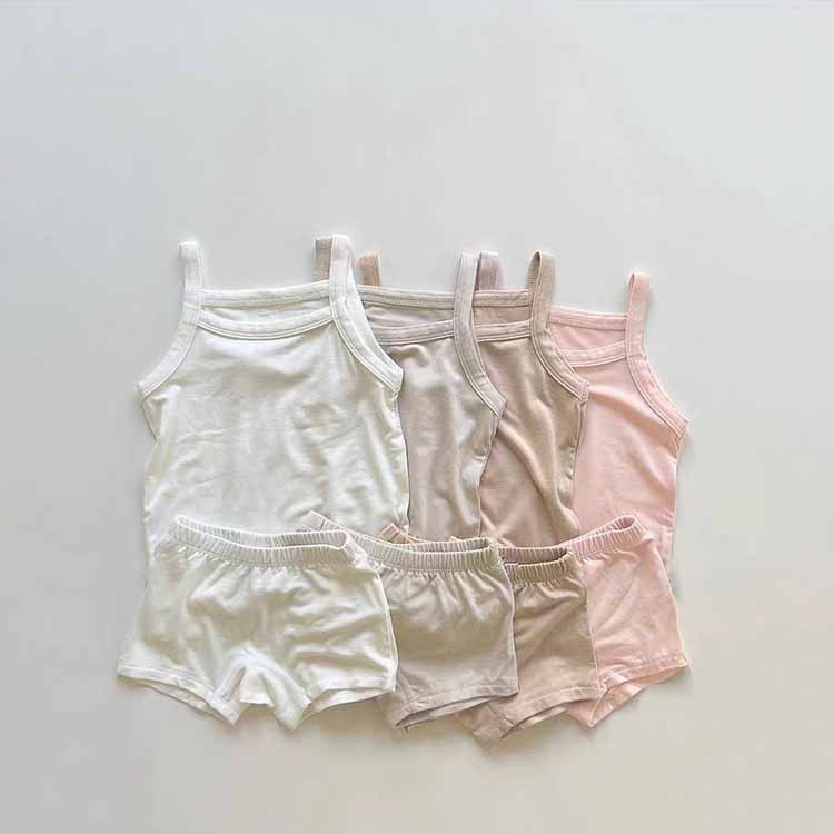 여름 얇은 아기 캐미솔 반바지 투피스 한국식 소년 소녀 탑 바지 세트 캐주얼 올 매칭