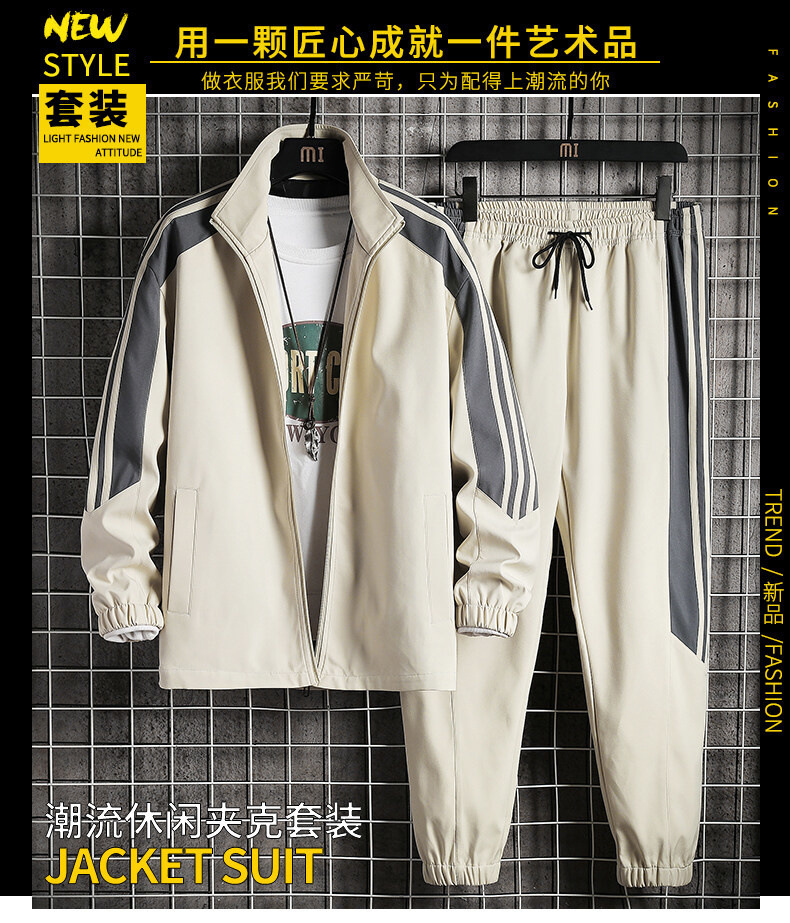 국경 간 2024 봄과 가을 새로운 남성 캐주얼 스포츠 패션 세트 트렌디 한 잘 생긴 통기성 작업복 재킷 재킷스토어 가기