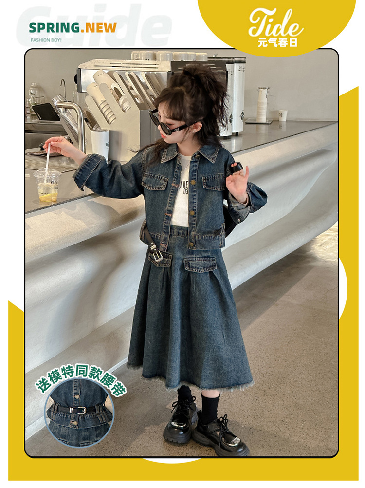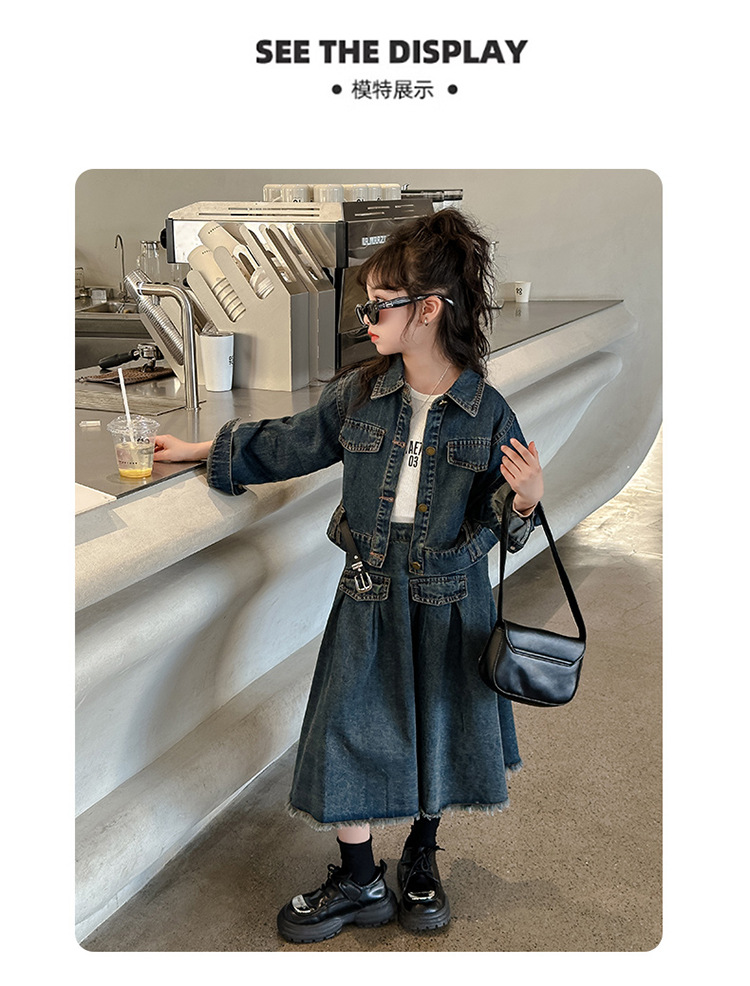 소녀 원피스 봄과 가을 2024 새로운 서양식 어린이 유행 데님 긴 원피스 세트 소녀의 봄 원피스스토어 가기