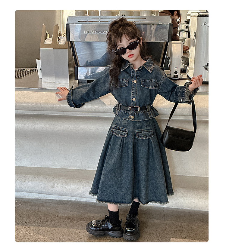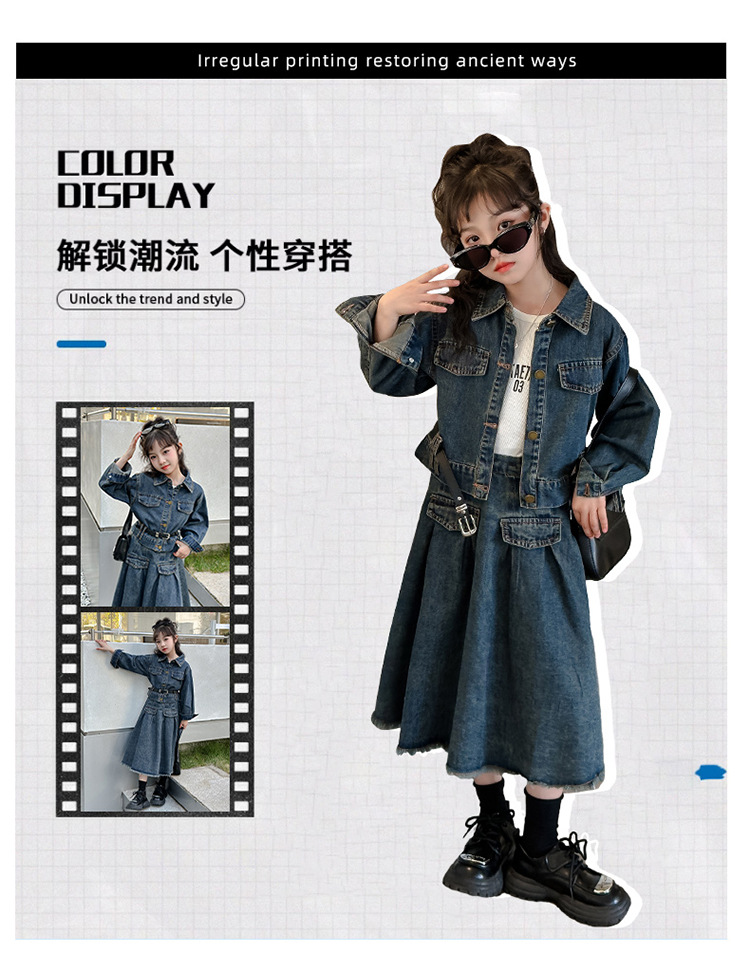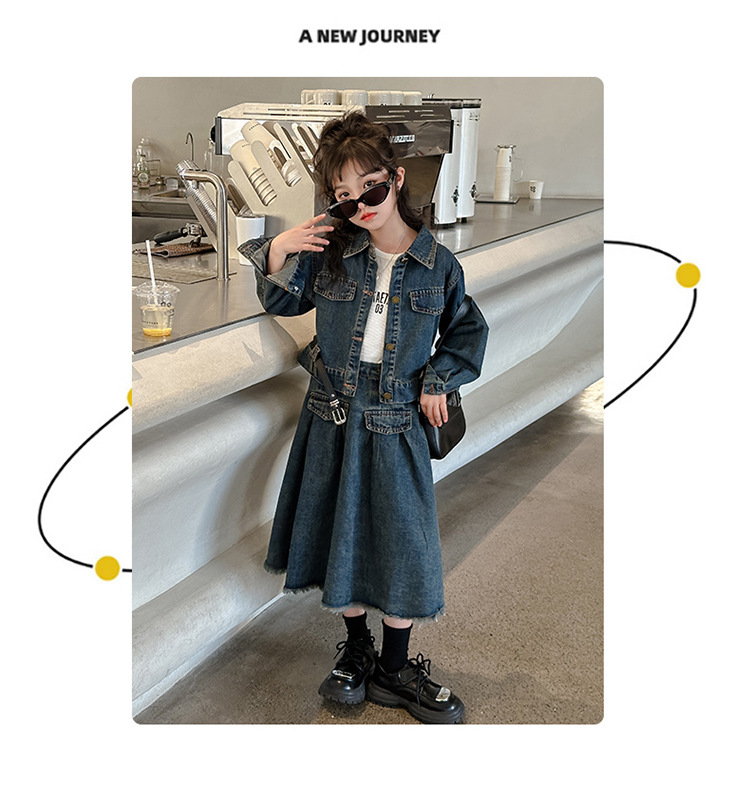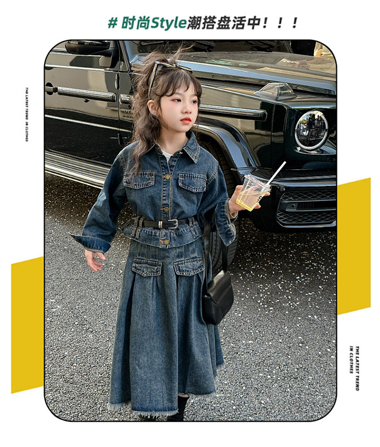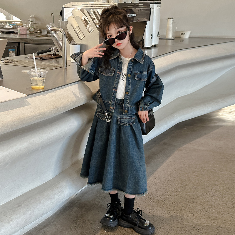 소녀 원피스 봄과 가을 2024 새로운 서양식 어린이 유행 데님 긴 원피스 세트 소녀의 봄 원피스