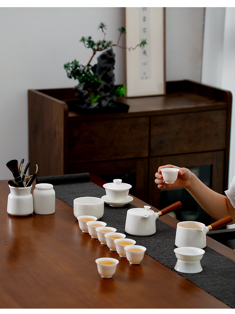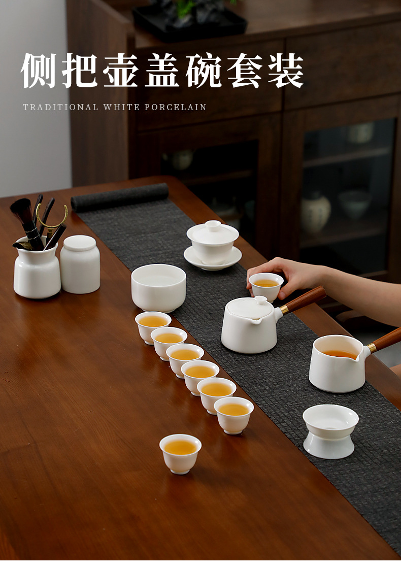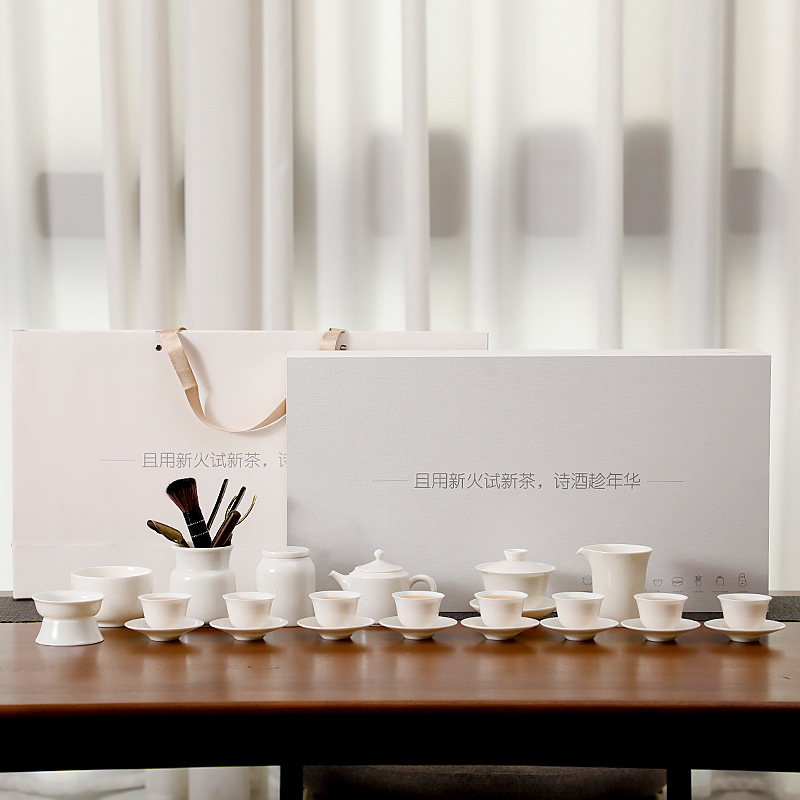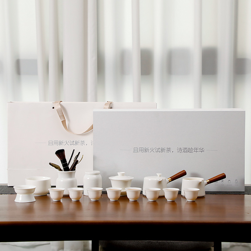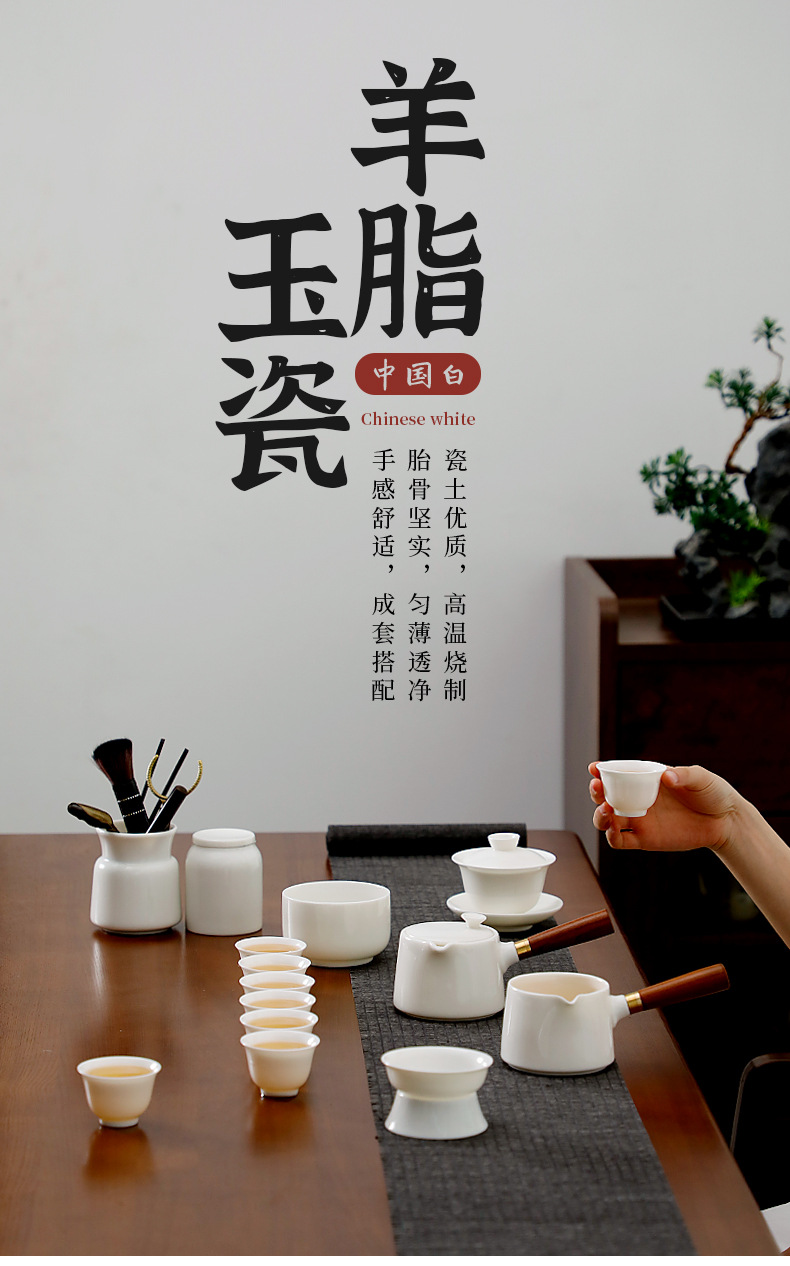 • 15 헤드 Dehua 양 뚱뚱한 옥 도자기 측면 손잡이 냄비 선물 상자