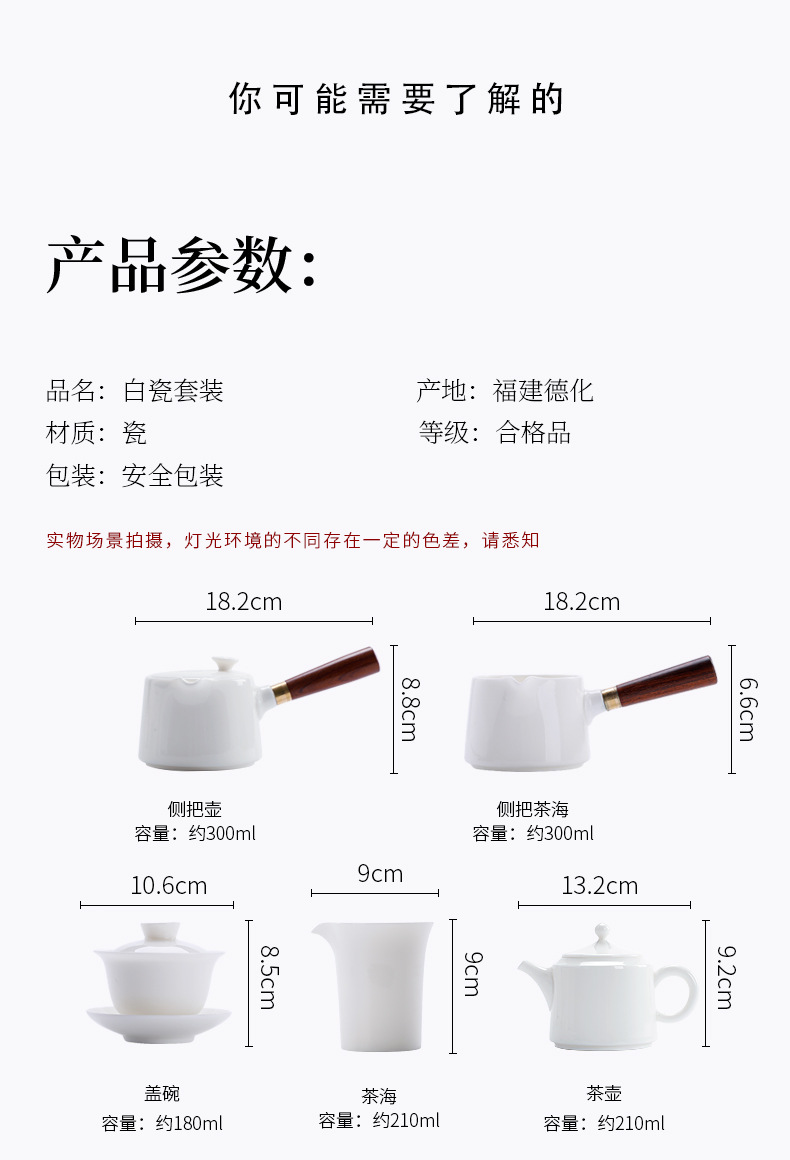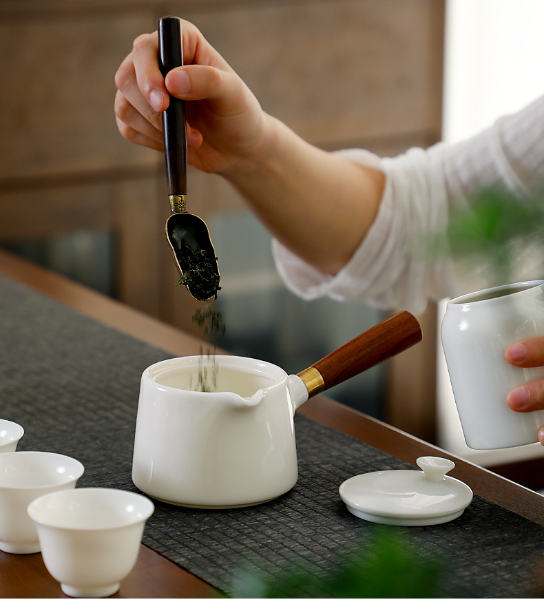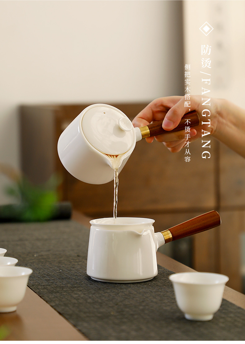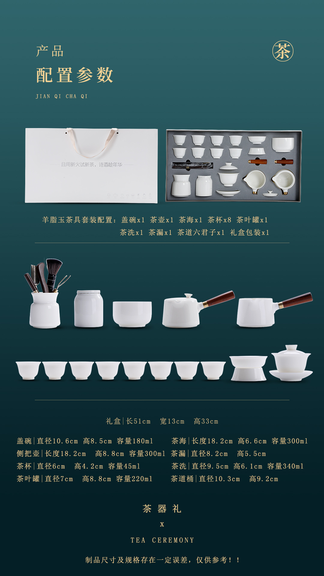 • 15 헤드 Dehua 양 뚱뚱한 옥 도자기 측면 손잡이 냄비 선물 상자