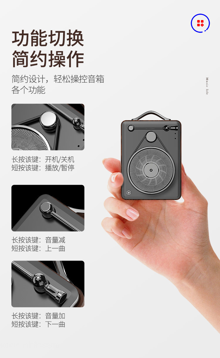 功能:蓝牙、TF卡播放(功放内带升压、记忆播放功能)