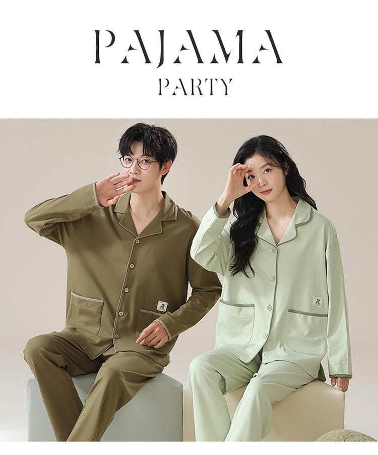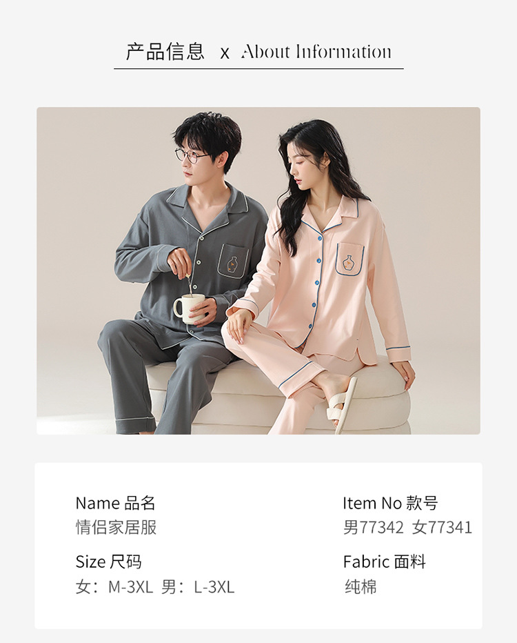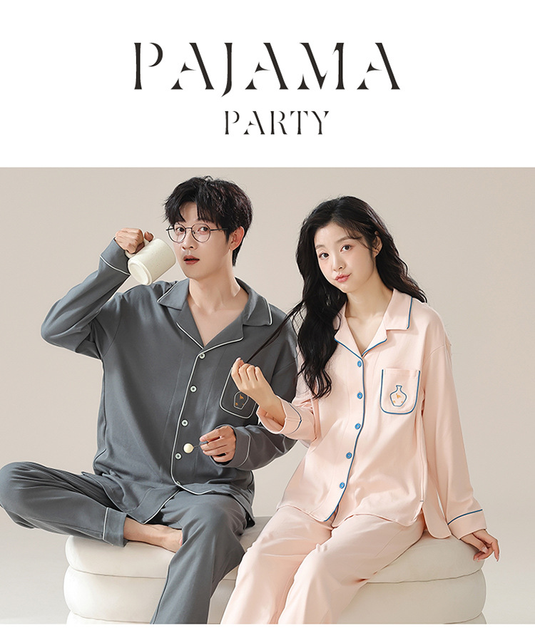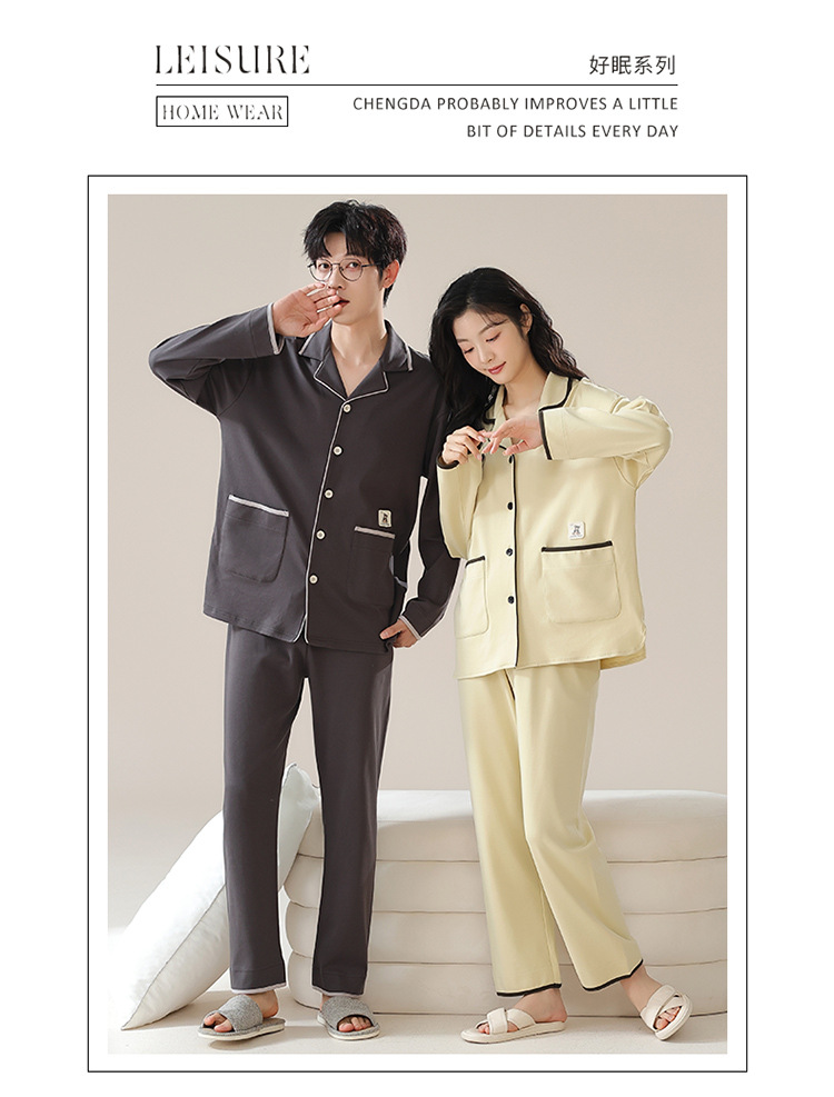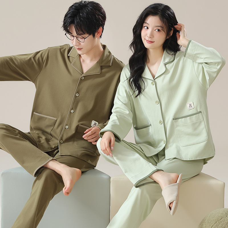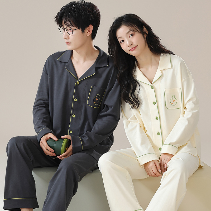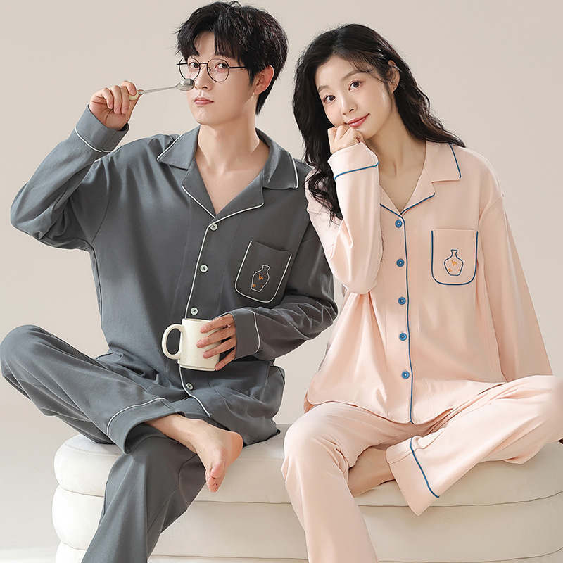 2024 커플 잠옷 여성의 봄 새로운 순수한면 카디건 패션 여성 홈웨어 캐주얼 남성은 밖에서 입을 수 있습니다.스토어 가기