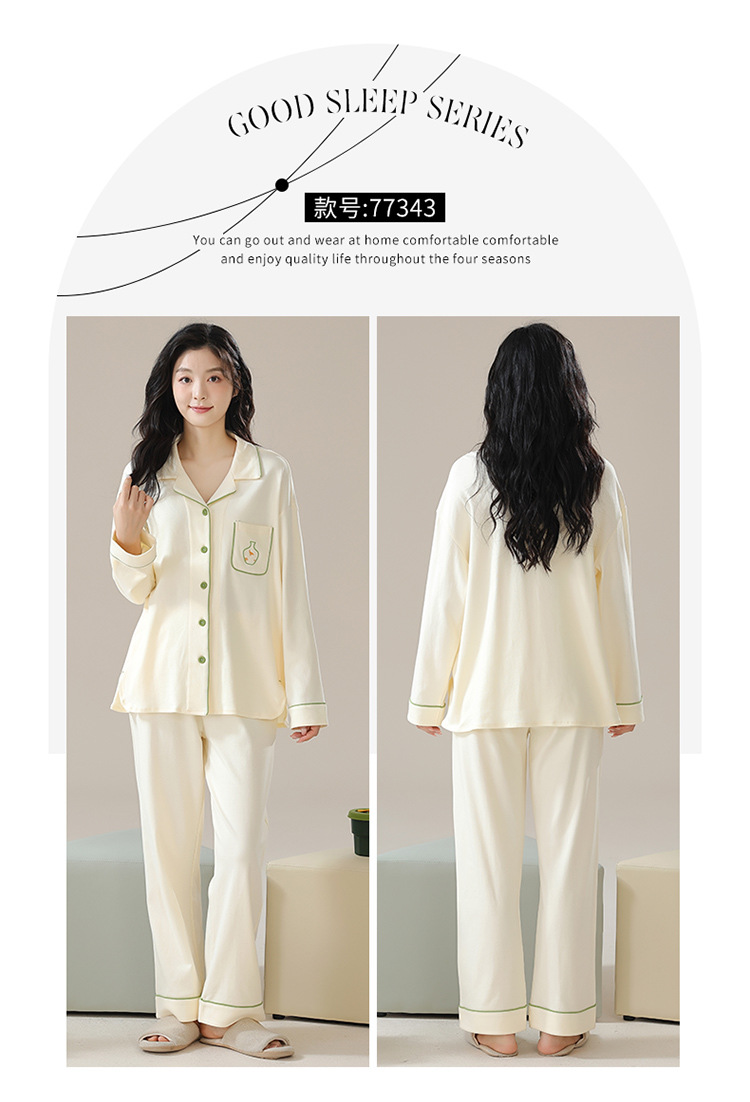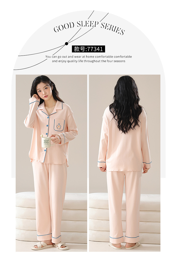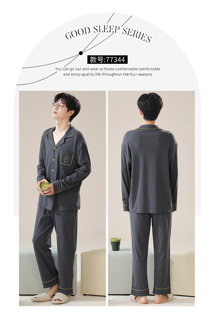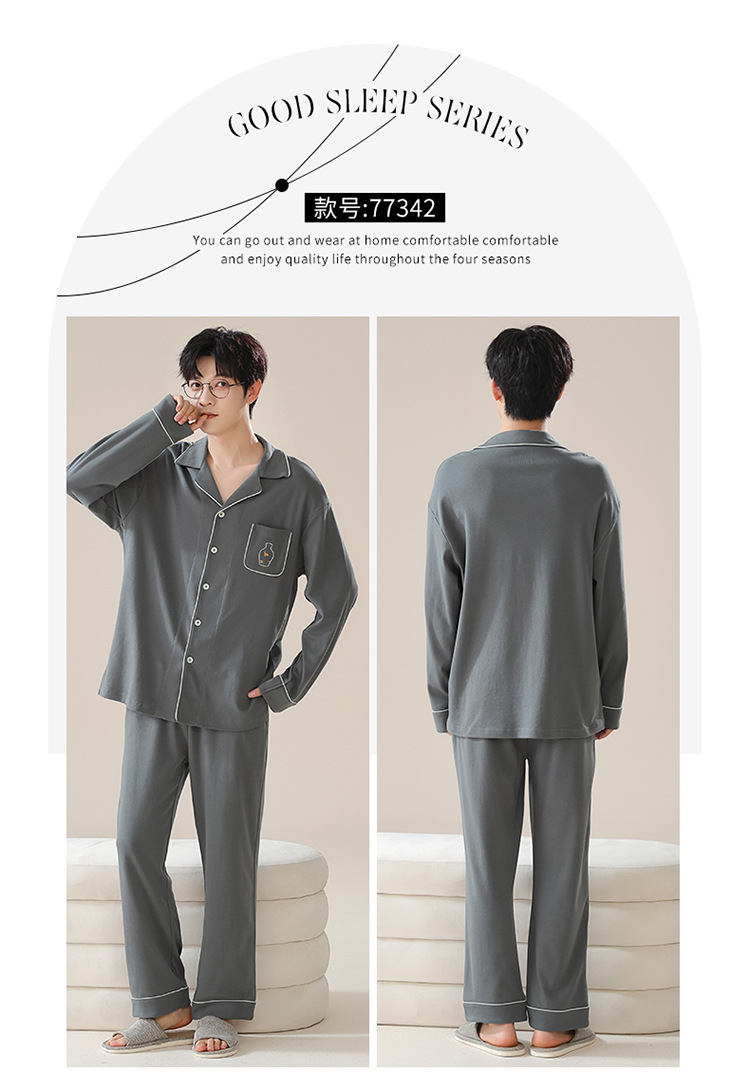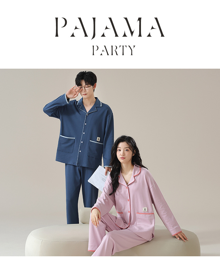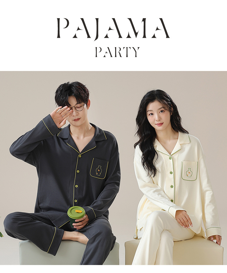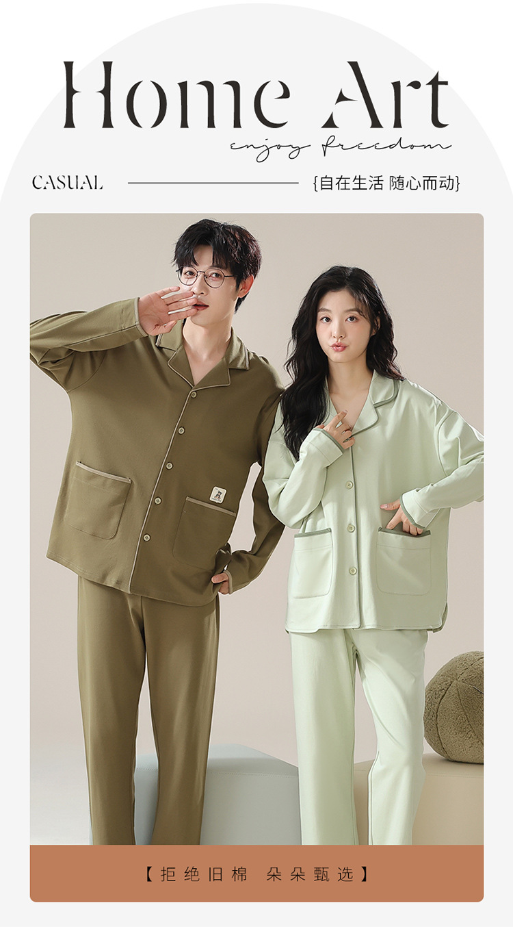 2024 커플 잠옷 여성의 봄 새로운 순수한면 카디건 패션 여성 홈웨어 캐주얼 남성은 밖에서 입을 수 있습니다.스토어 가기