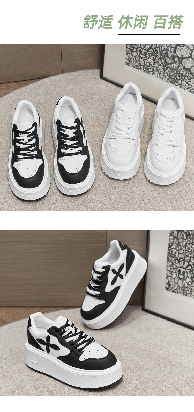 2024 봄 새로운 작은 높이 증가 캐주얼 패션 올 매치 스니커즈 여성의 두꺼운 밑창 정품 가죽 둥근 발가락 흰색 신발 여성스토어 가기