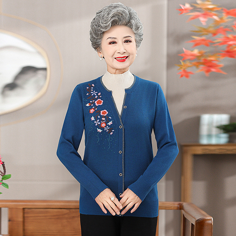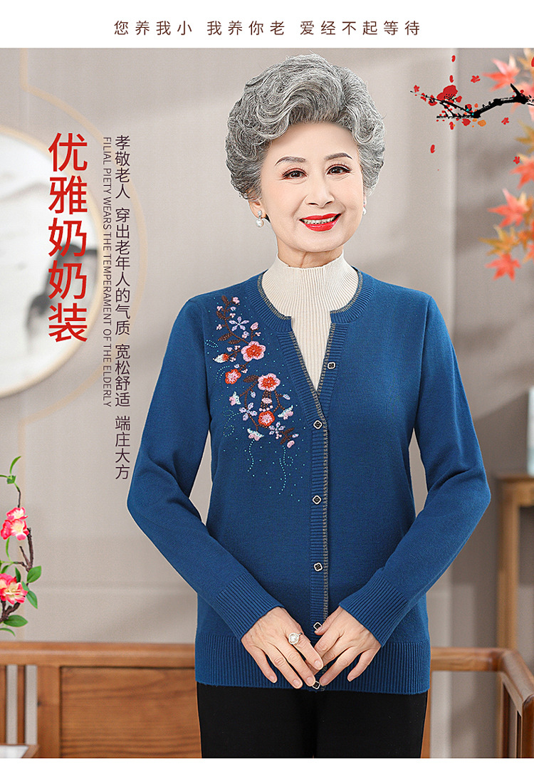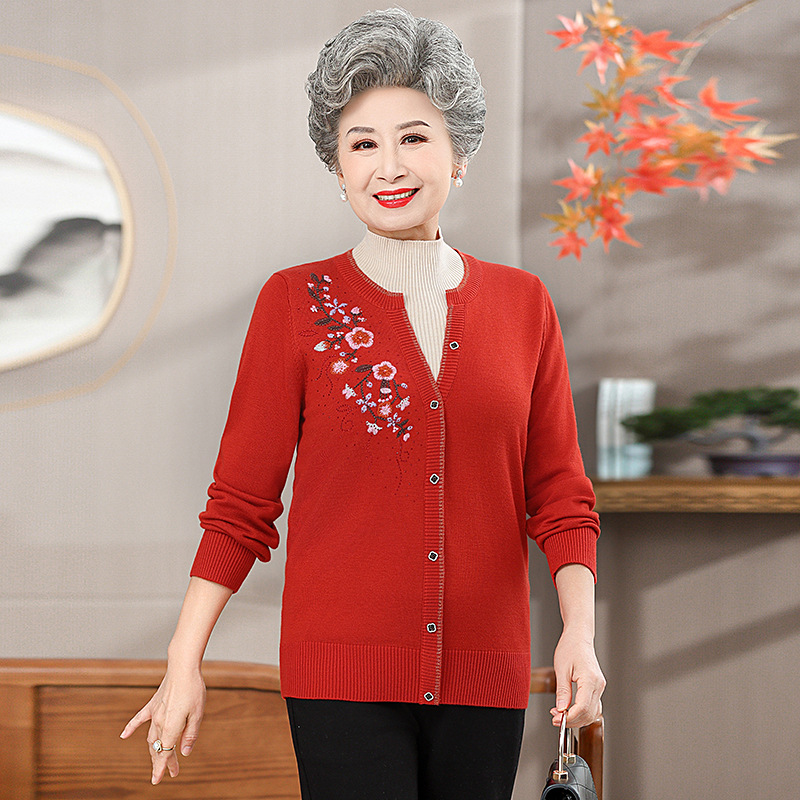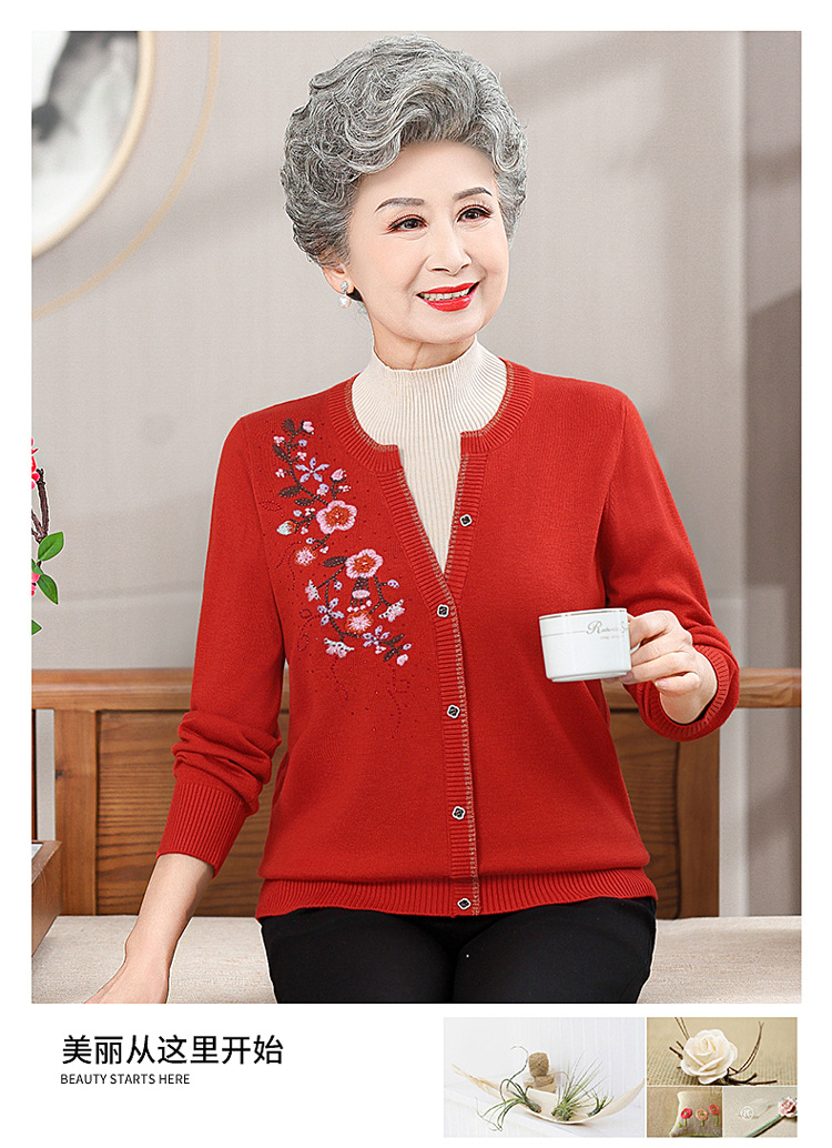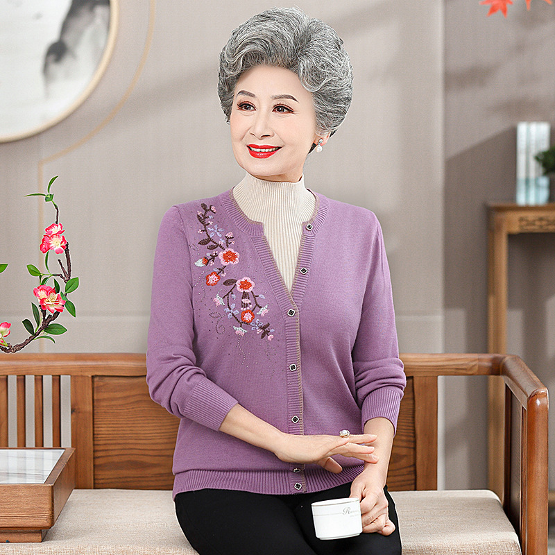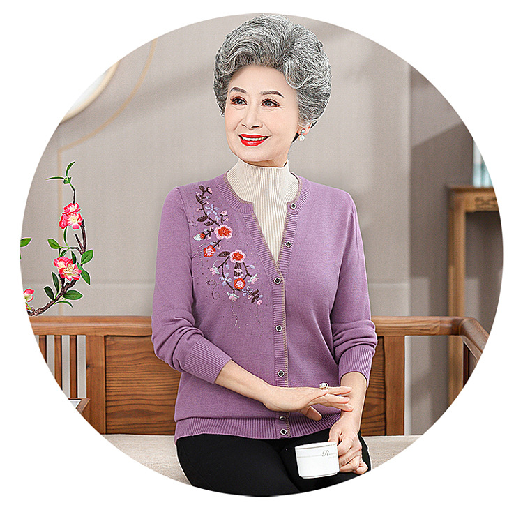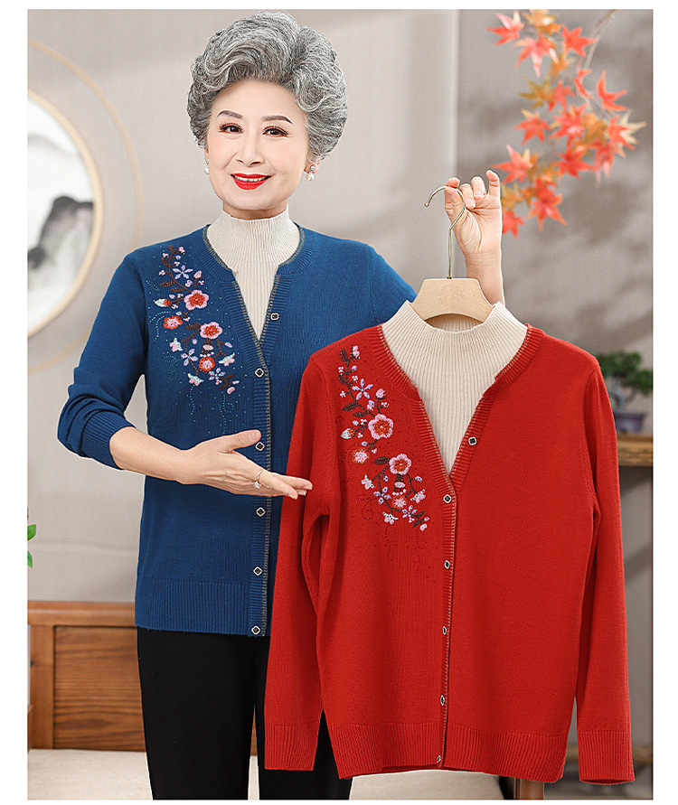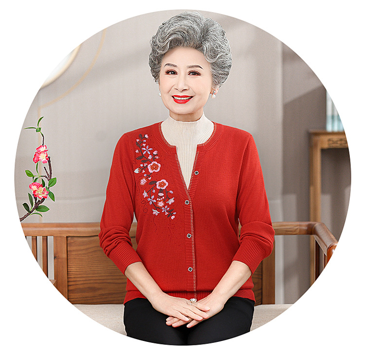 할머니 봄 새로운 모직 스웨터 하프 터틀넥 스웨터 단색 중년 및 노인 어머니 봄 가짜 투피스 바닥 셔츠스토어 가기