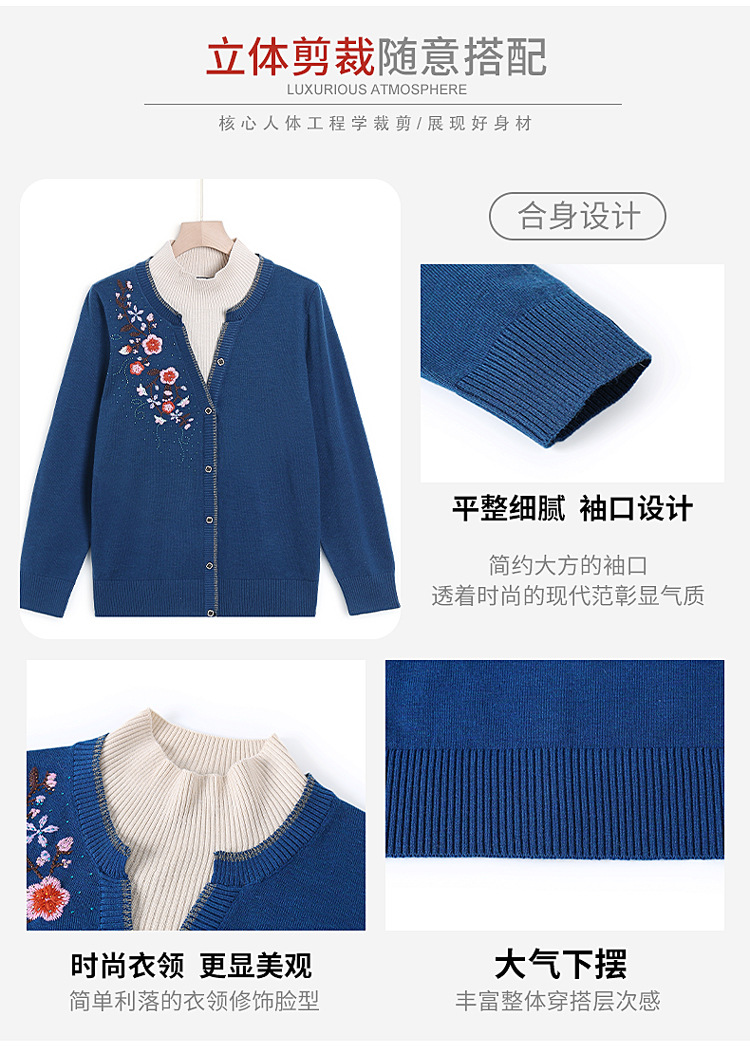 할머니 봄 새로운 모직 스웨터 하프 터틀넥 스웨터 단색 중년 및 노인 어머니 봄 가짜 투피스 바닥 셔츠