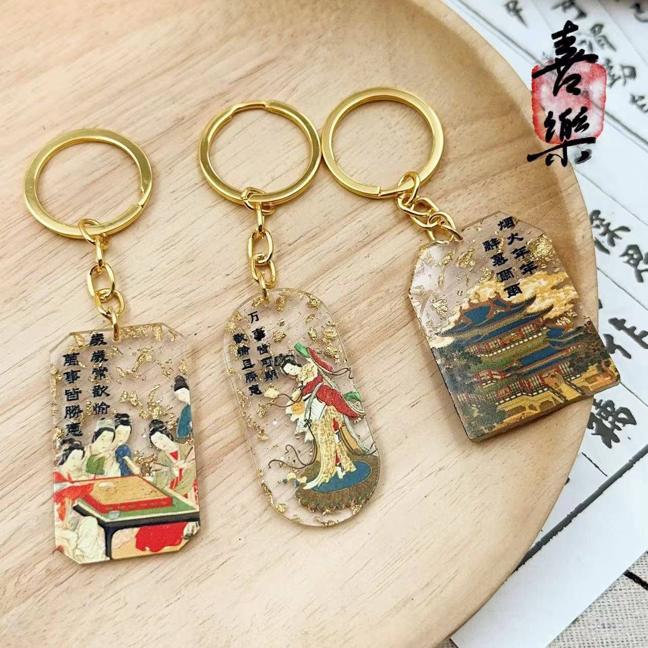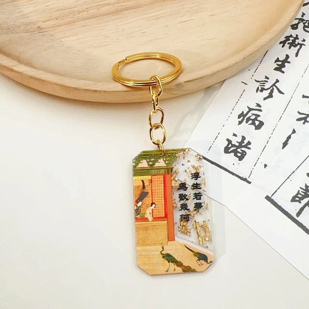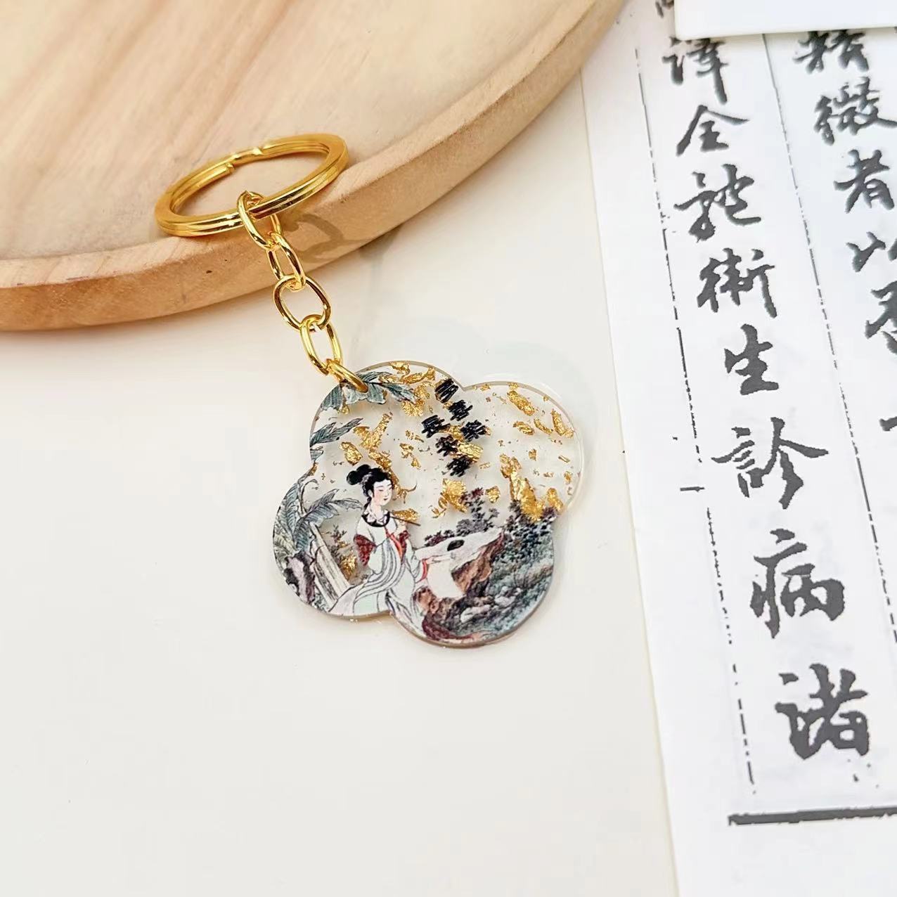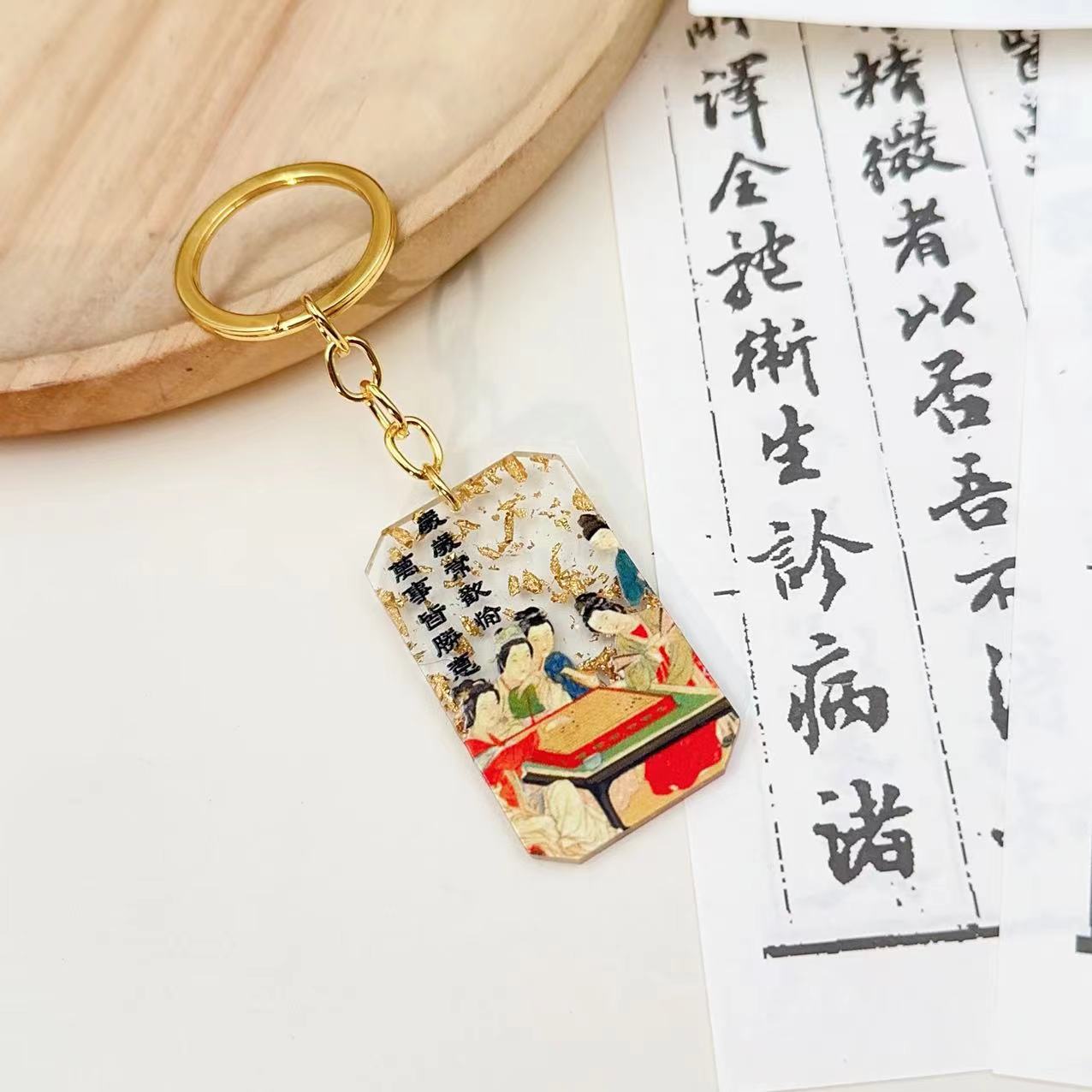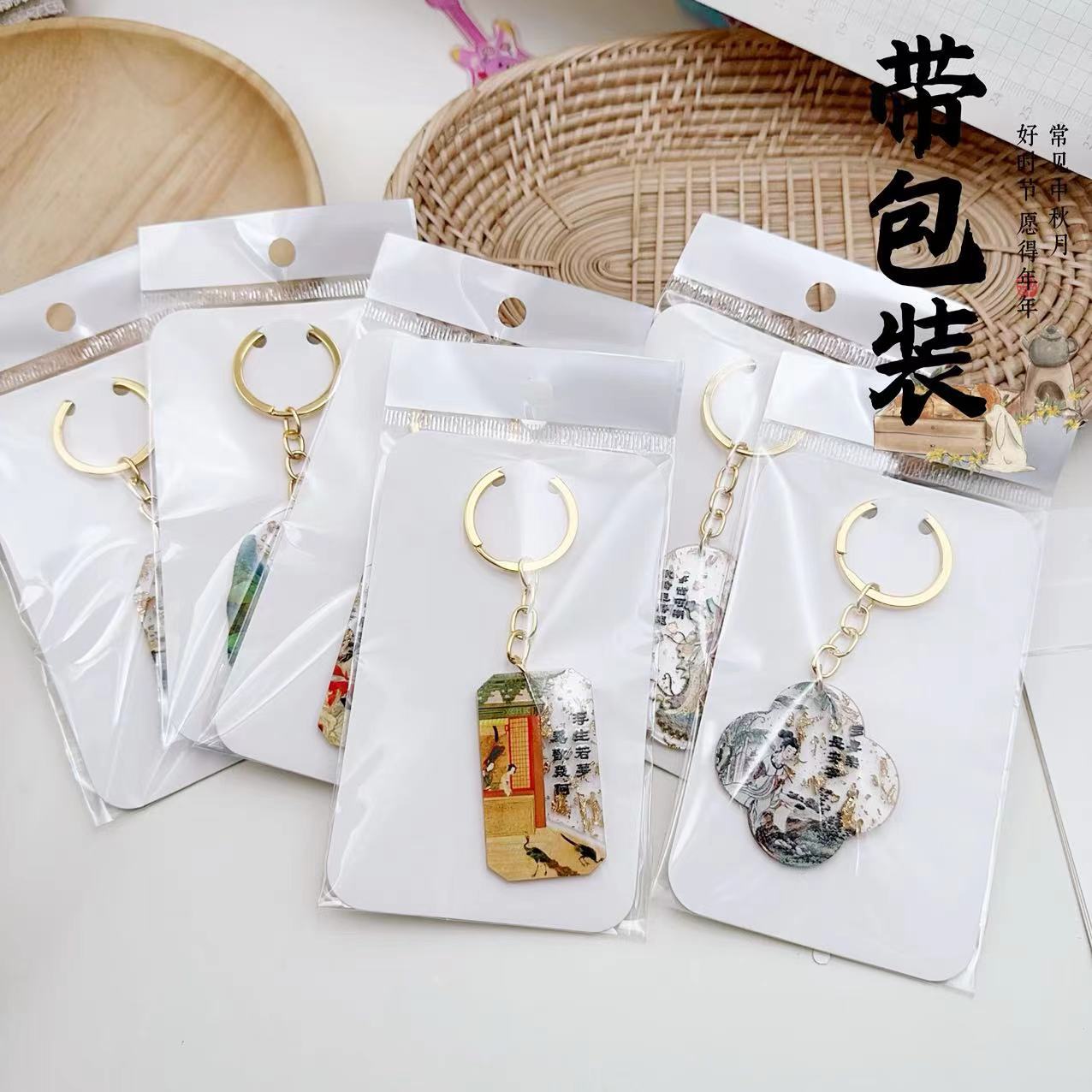 국가 패션 중국 스타일 고대 스타일 문학과 창조적 인 예술적 책가방 키 체인 합금 아크릴 펜던트 학생 선물 펜던트
