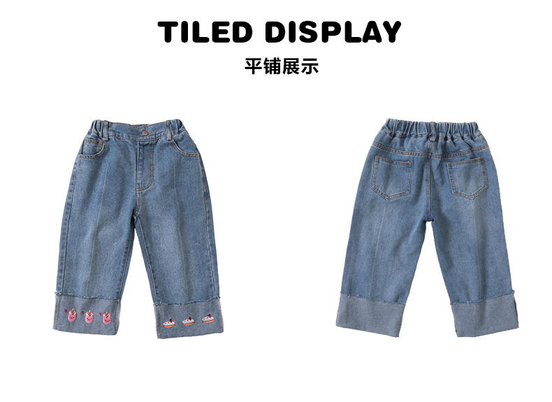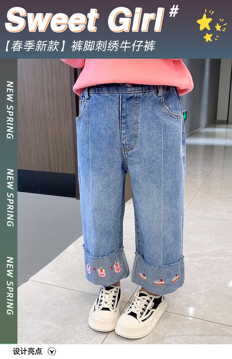 소녀 수 놓은 청바지 2024 봄 새로운 어린이 올매치 유행 수 놓은 넓은 다리 긴 바지 유행 배달