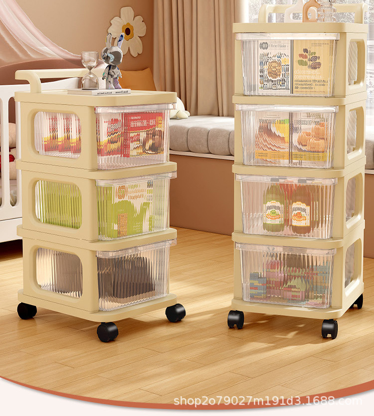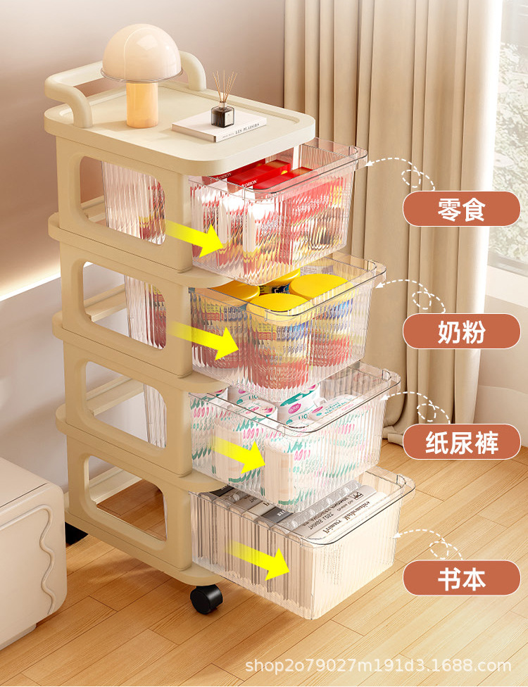 움직일 수있는 트롤리 스토리지 랙 가정용 아기 용품 캐비닛 다층 장난감 스낵 북 스토리지 랙 캐비닛