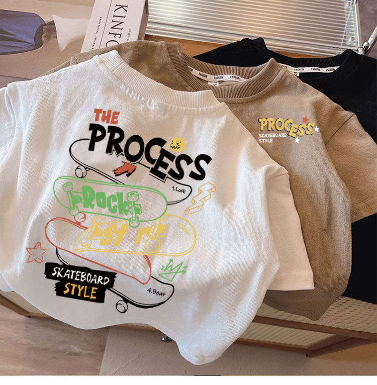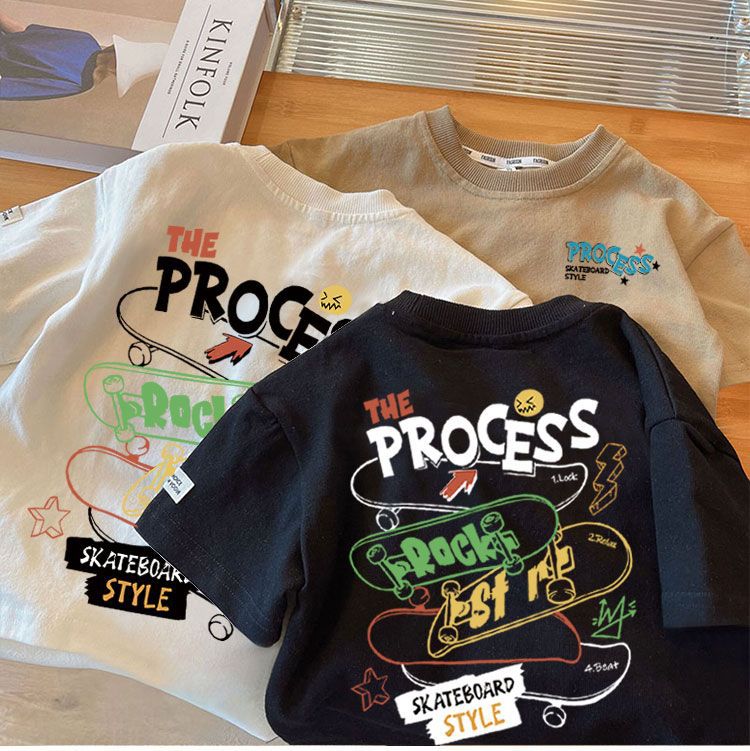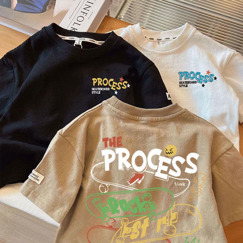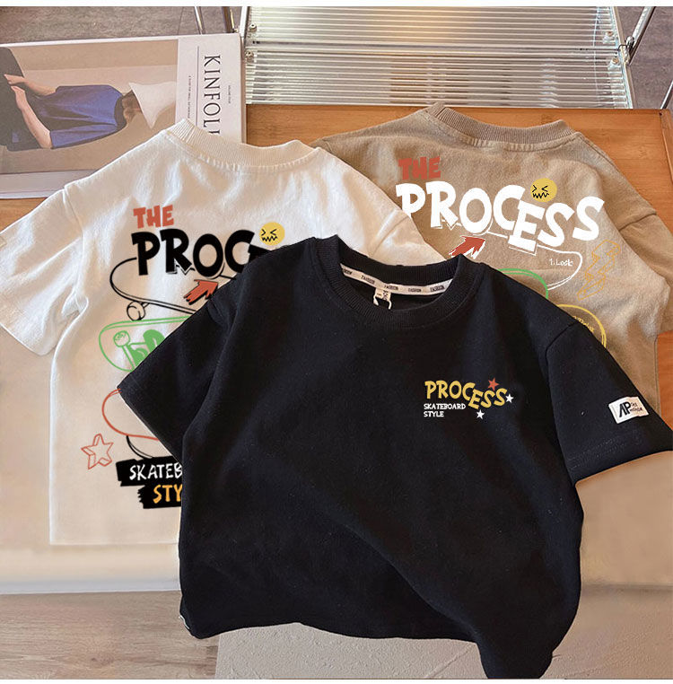 신상 순면 반팔 티셔츠 여름옷 2025 신상 아동 남아 유아용 얇은 스타일리시 상의 남아용스토어 가기