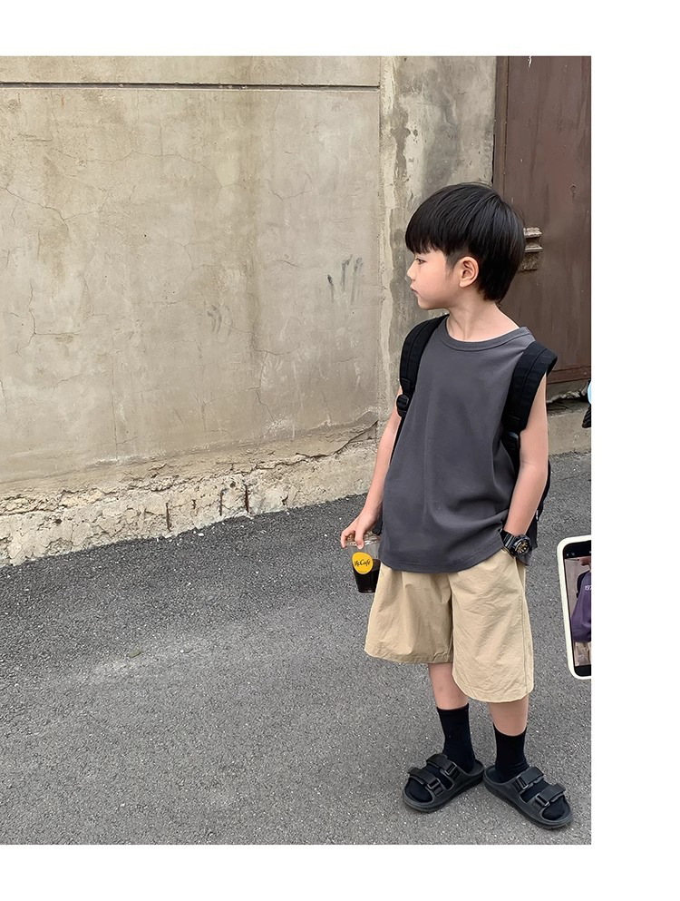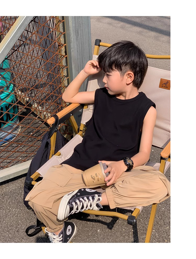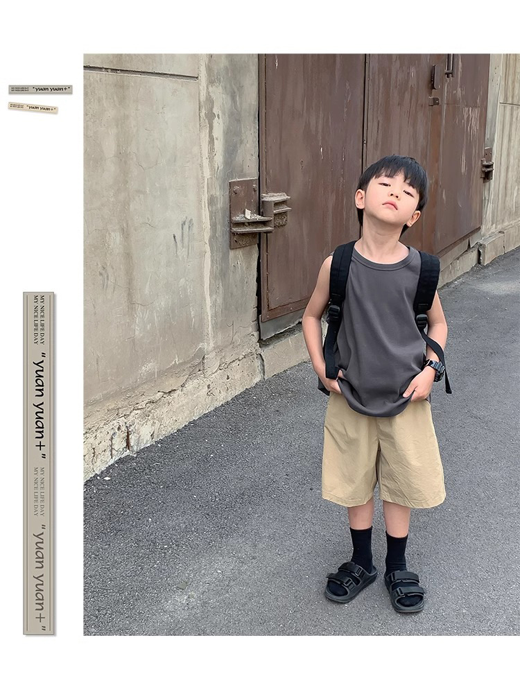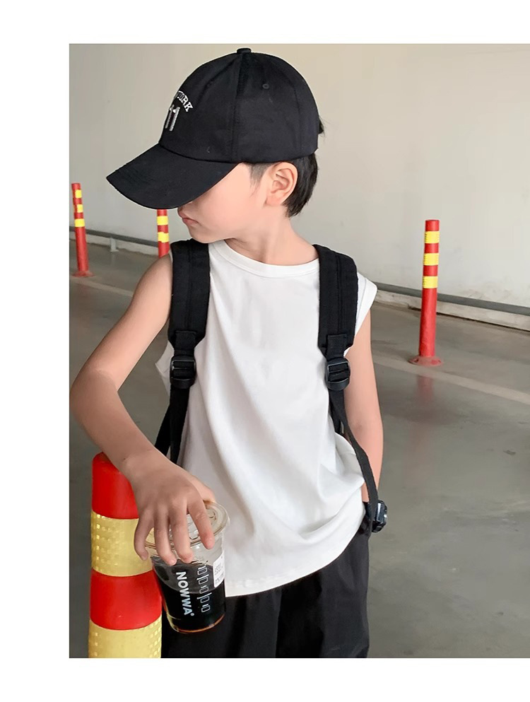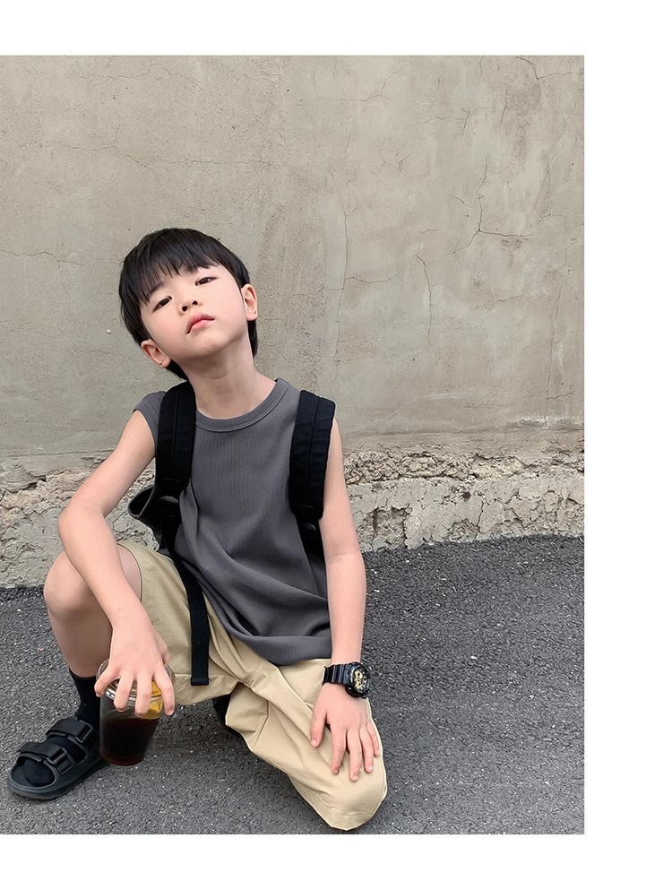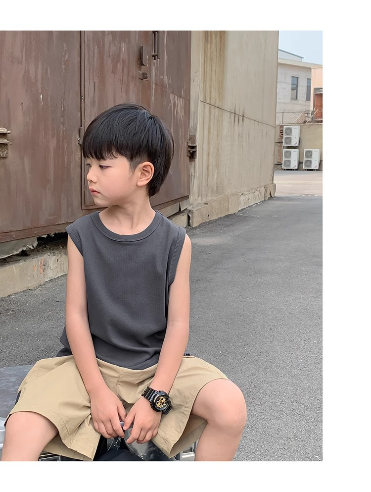 어린이 조끼 소년 여름 소년의 순수한면 클래스는 단색 중대형 어린이 조끼 민소매 티셔츠 겉옷 탑스토어 가기
