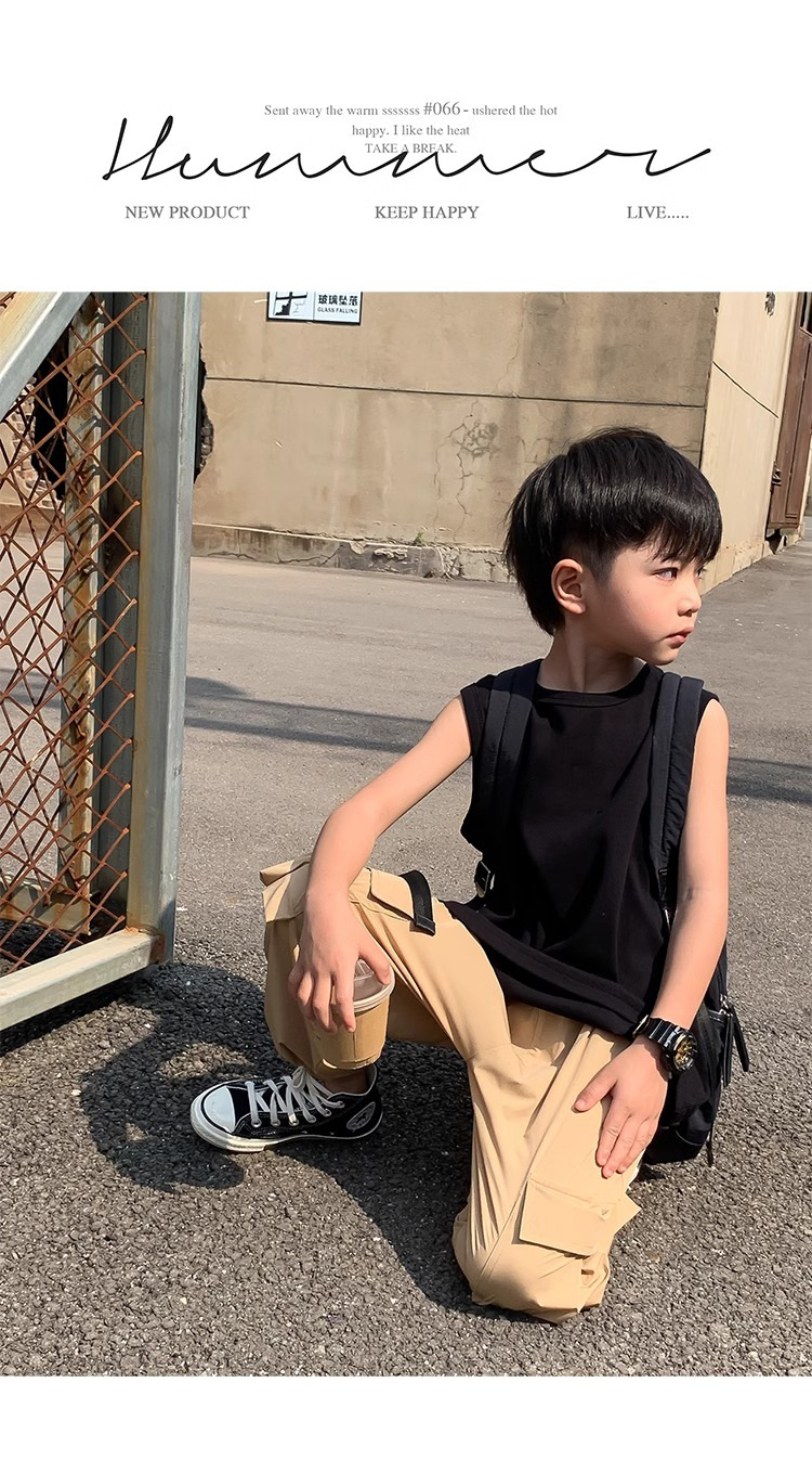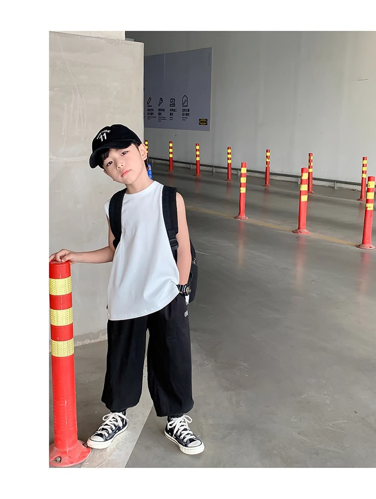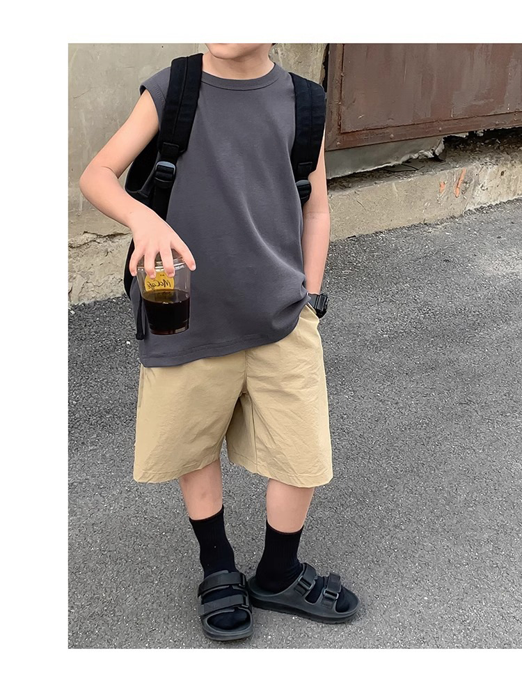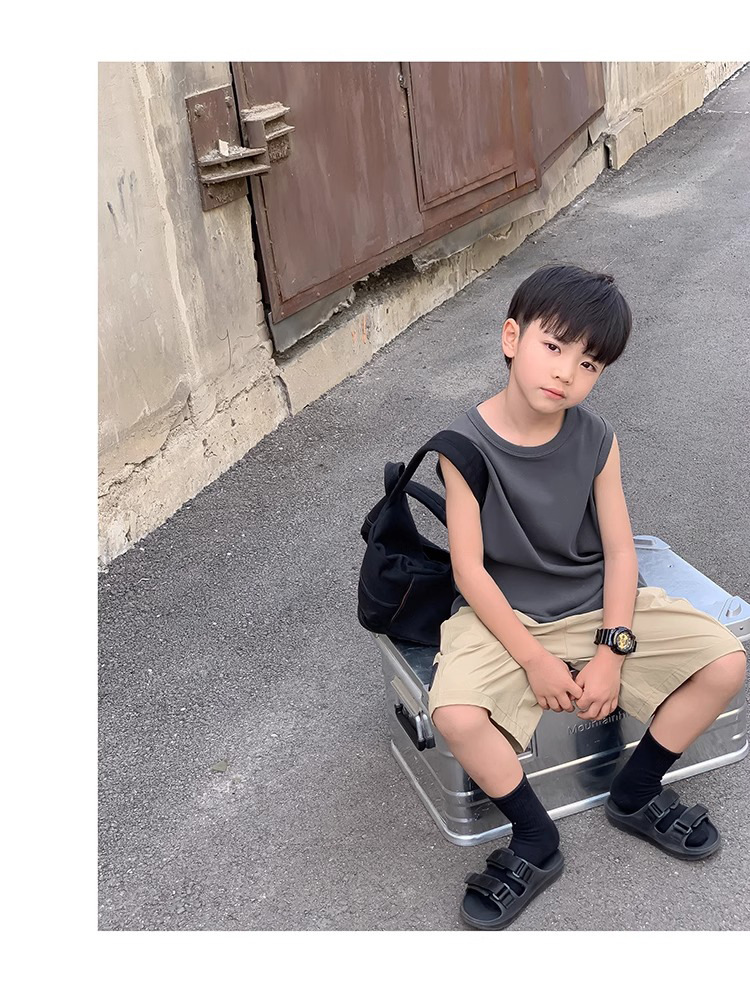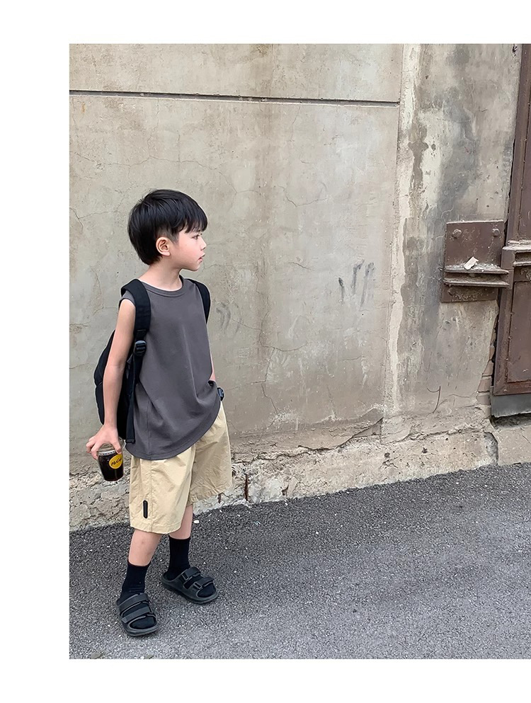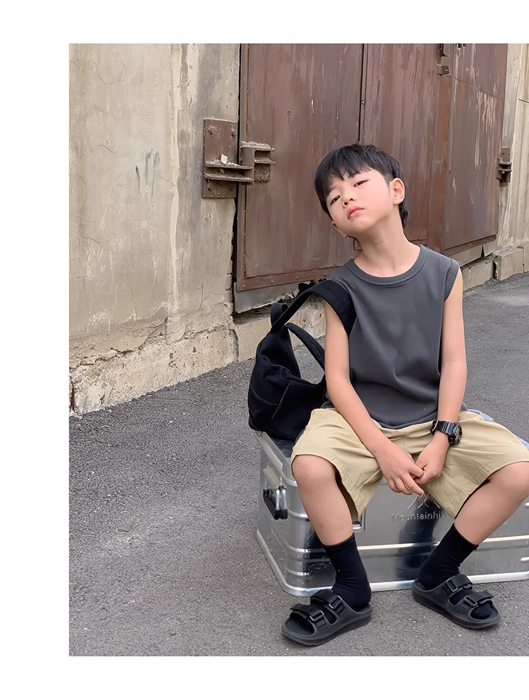 어린이 조끼 소년 여름 소년의 순수한면 클래스는 단색 중대형 어린이 조끼 민소매 티셔츠 겉옷 탑스토어 가기