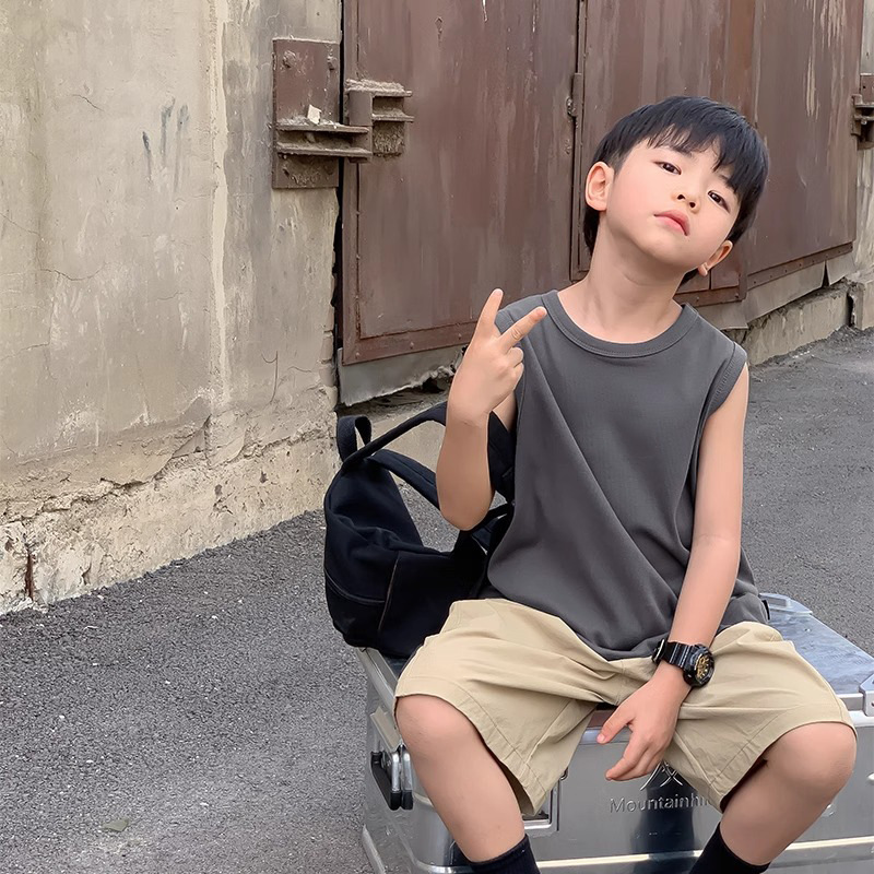 어린이 조끼 소년 여름 소년의 순수한면 클래스는 단색 중대형 어린이 조끼 민소매 티셔츠 겉옷 탑