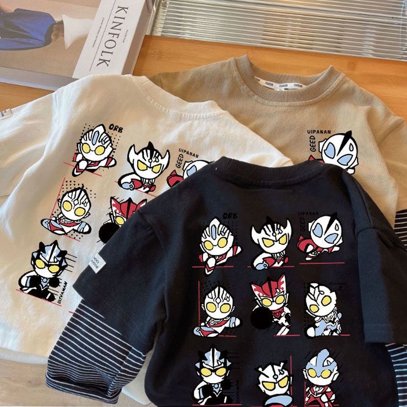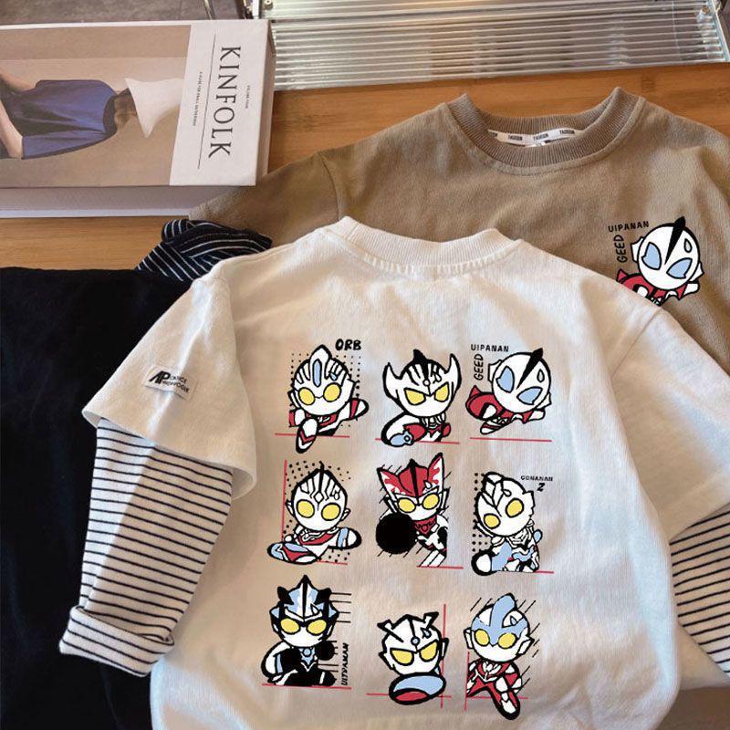 남학생 코튼 긴팔 티셔츠 봄과 가을 의류 잘 생긴 아기 한국 스타일 어린이 가짜 투피스 탑 바닥 셔츠 야외 패션 t스토어 가기