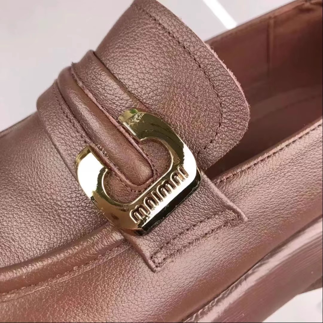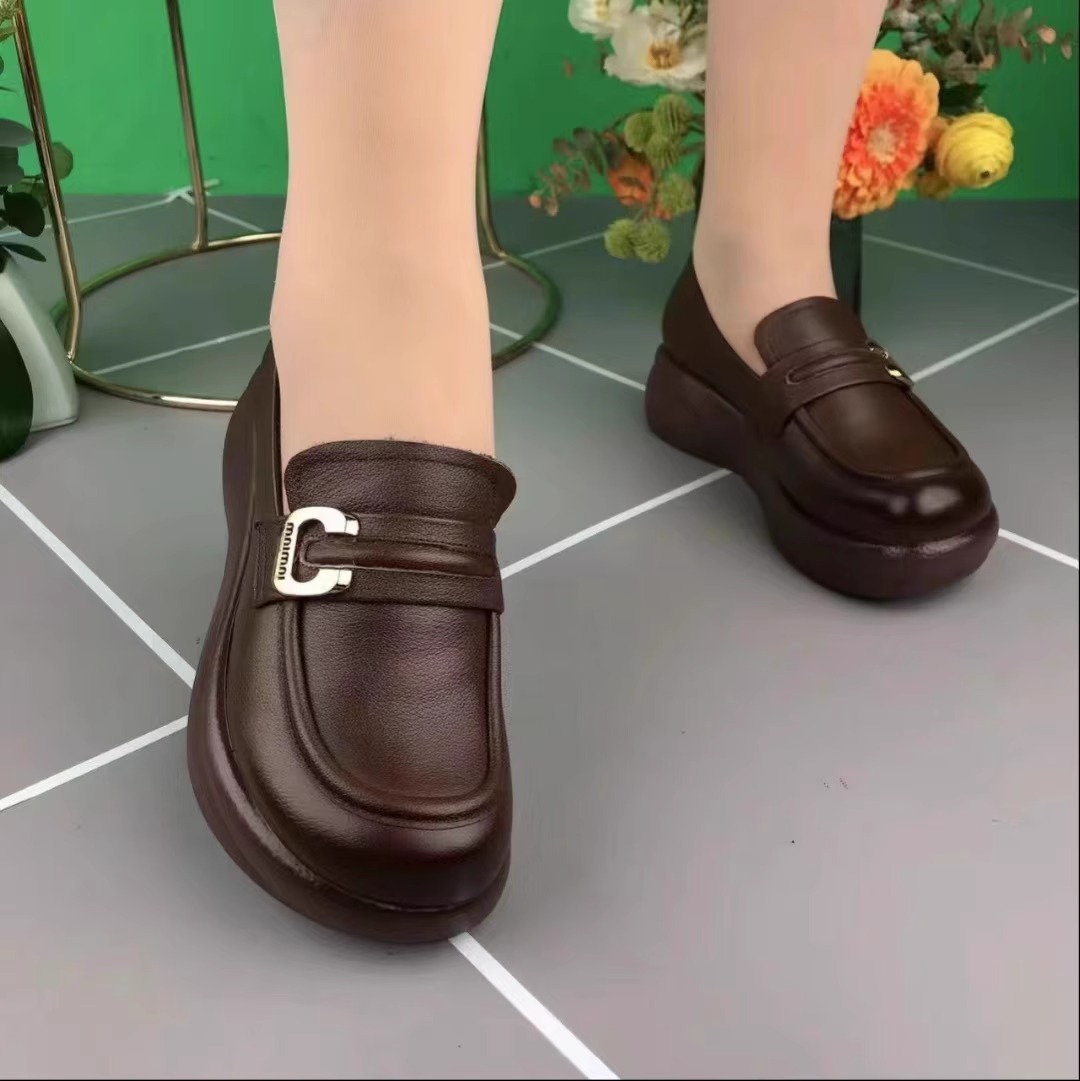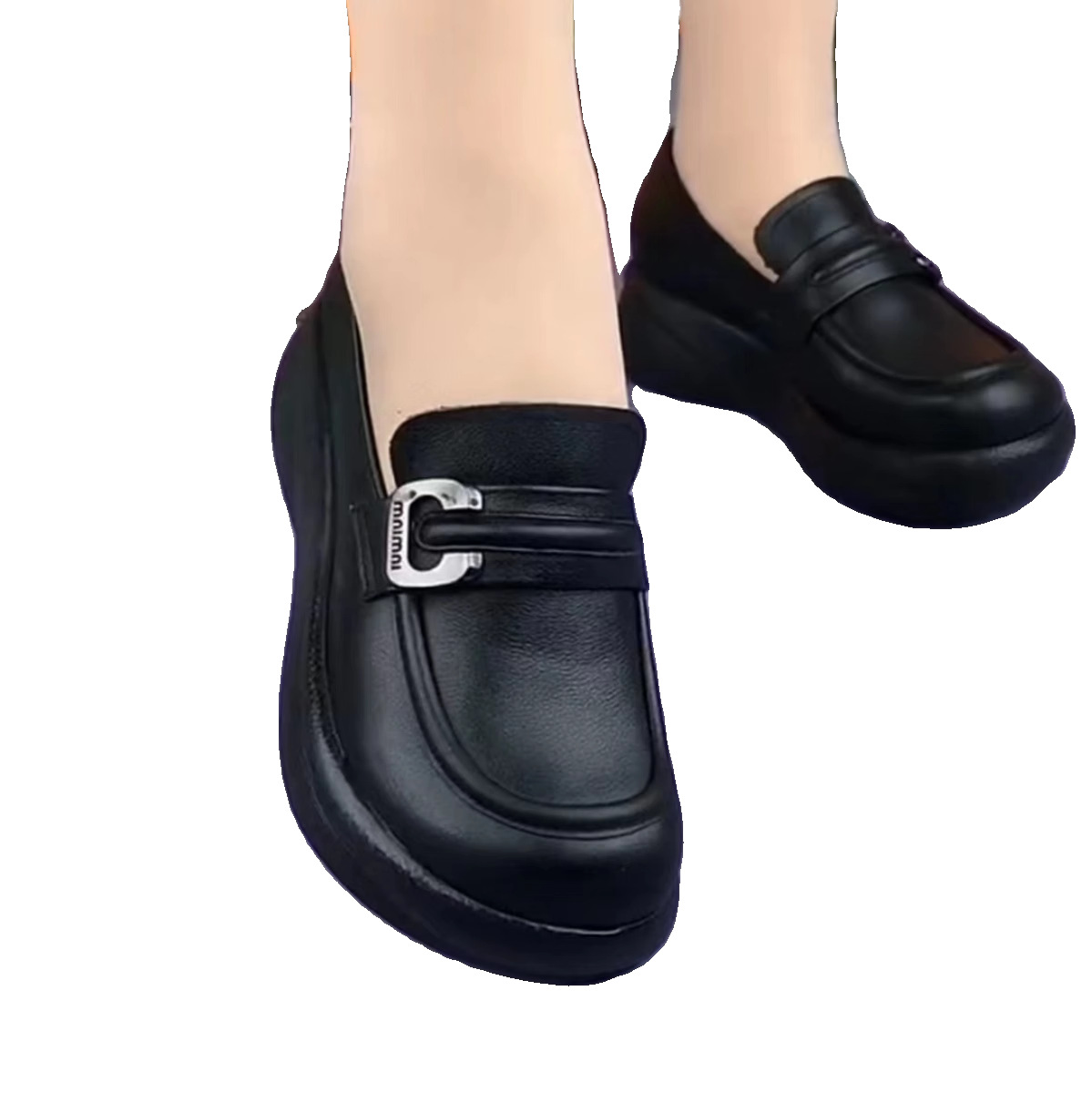 정품 가죽 싱글 레이어 신발 여성 2024 봄 새로운 플랫폼 플랫폼 라운드 토 레트로 편안한 부드러운 가죽 신발스토어 가기