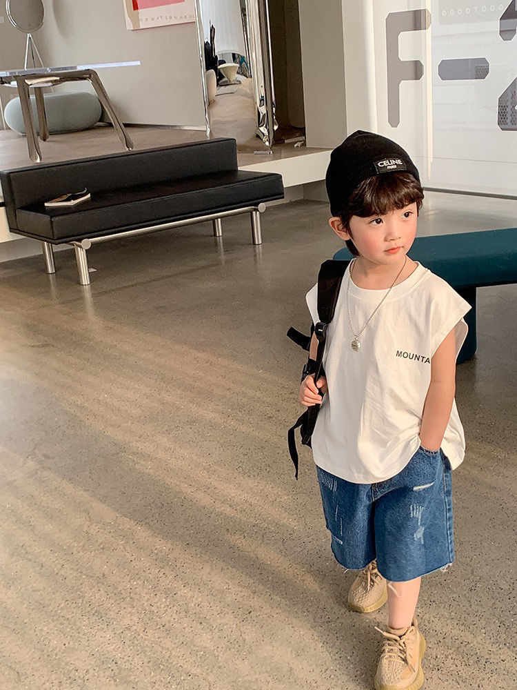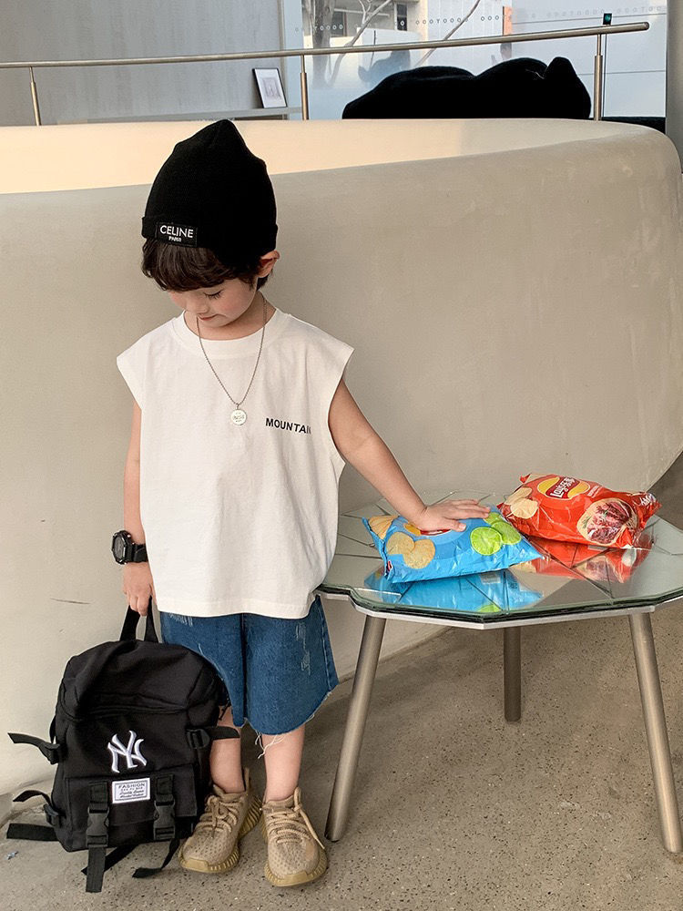 아동용 조끼 탑 소년 2025 여름 새 스타일 Letter Mountain 느슨한 조끼 아기 맞춤형 민소매 유행 T스토어 가기
