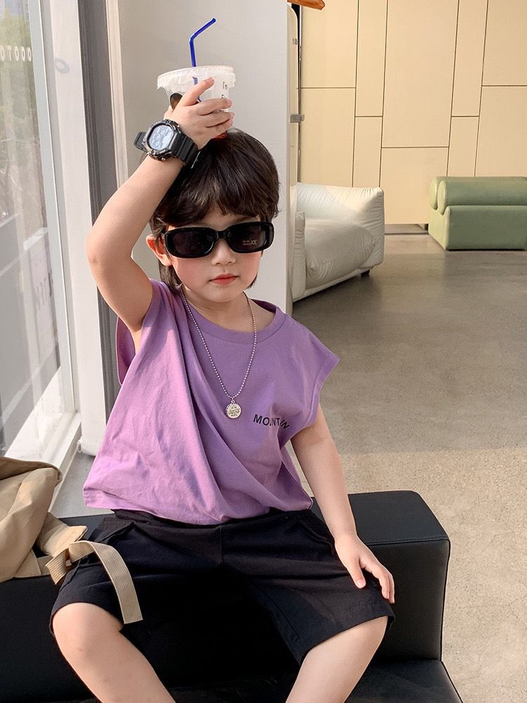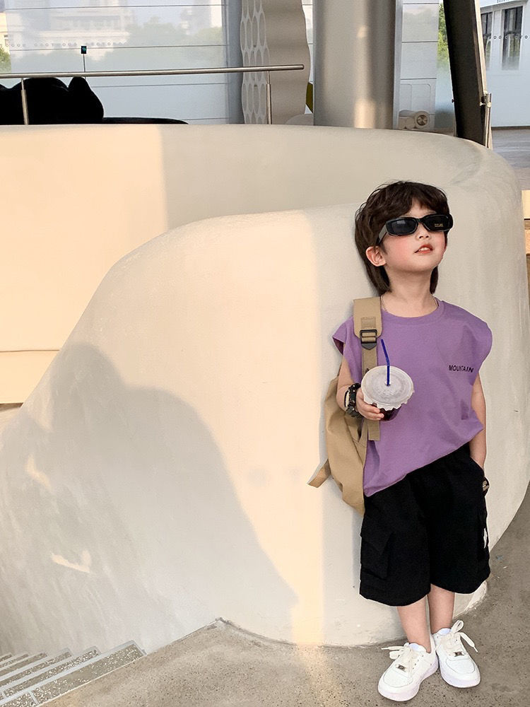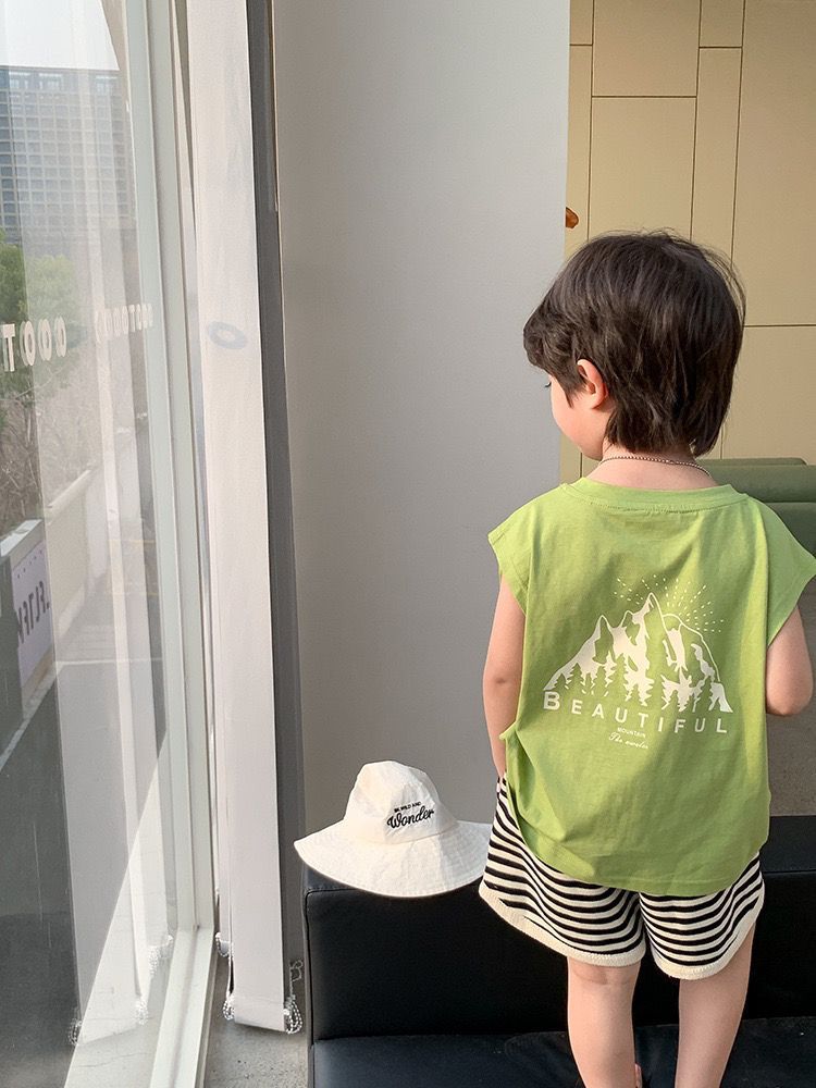 아동용 조끼 탑 소년 2025 여름 새 스타일 Letter Mountain 느슨한 조끼 아기 맞춤형 민소매 유행 T