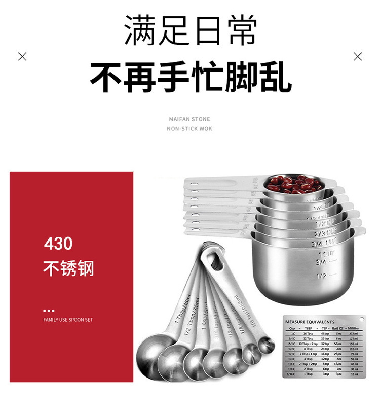 材质,量杯食品级304不锈钢,量勺430