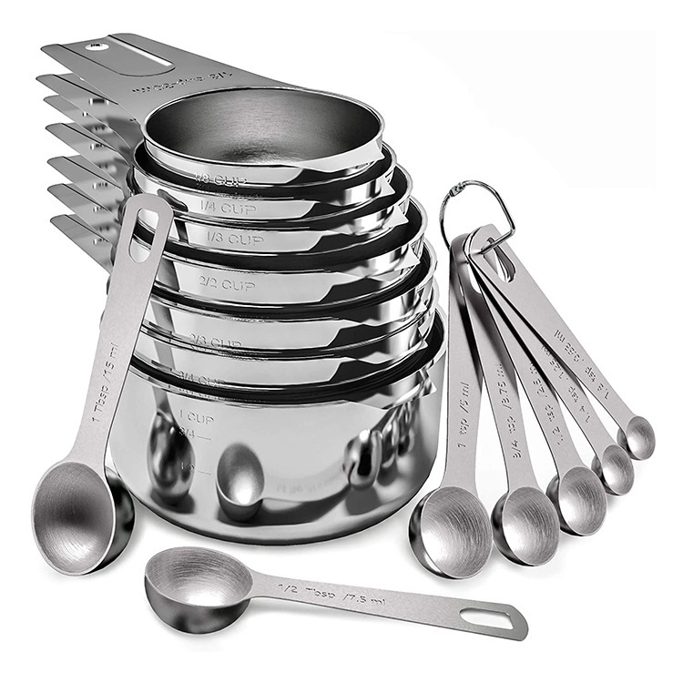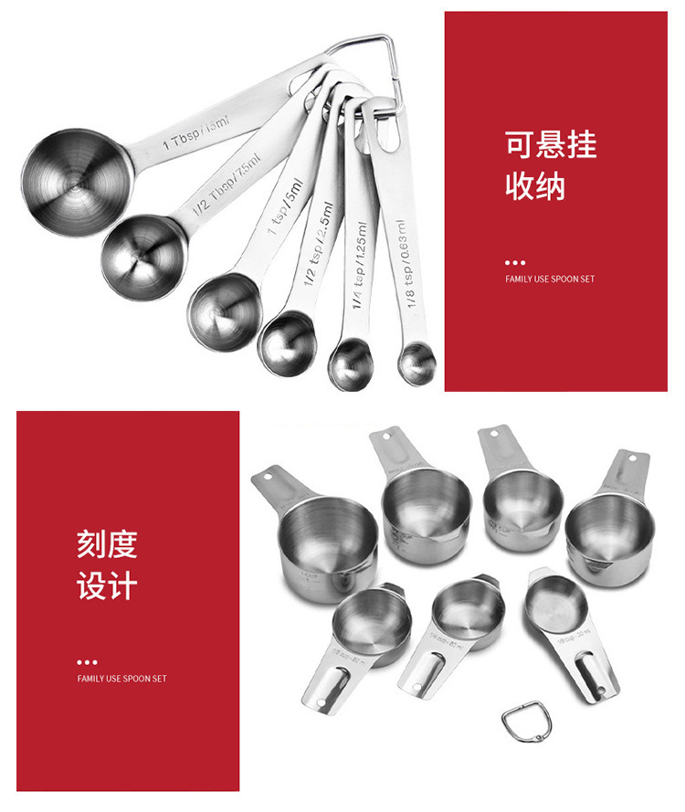 국경 간 스팟 스테인레스 스틸 측정 숟가락 측정 컵 세트 주방 도구 가정용 숟가락 규모 커피 베이킹 도구스토어 가기