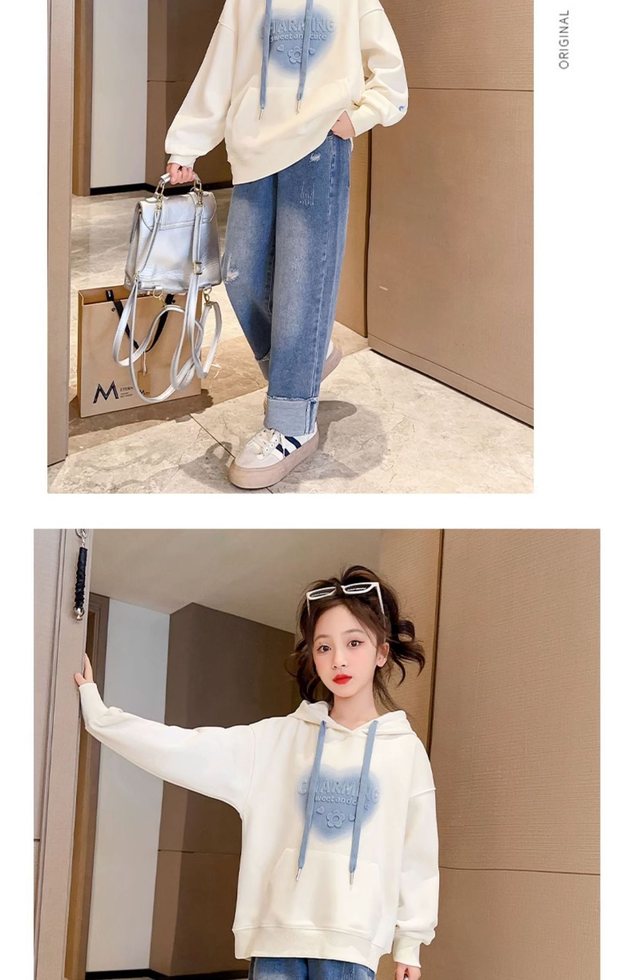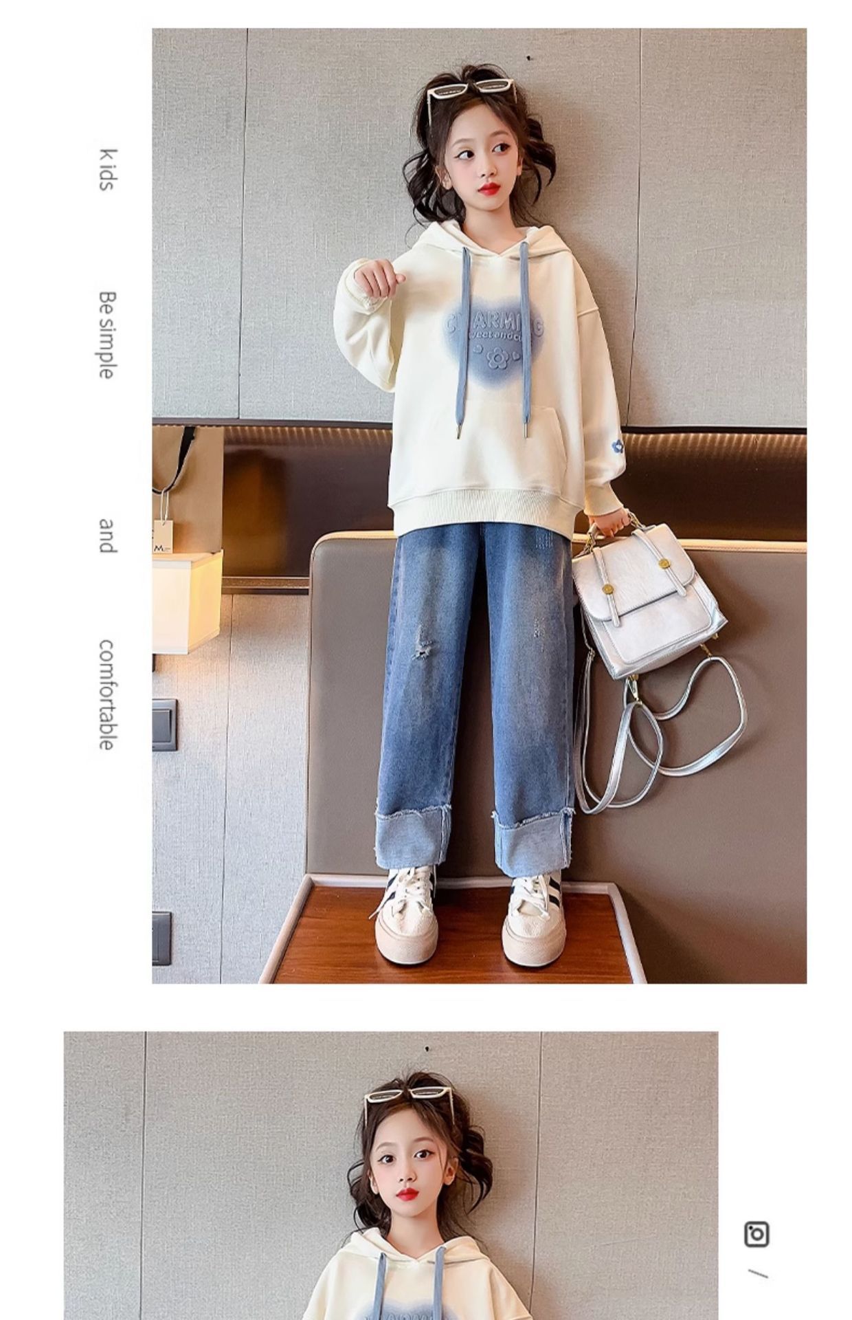 소녀들의 봄과 가을 스웨터 2024 새로운 서양식 봄과 가을 후드 탑 소녀들의 가을 옷 소녀스토어 가기