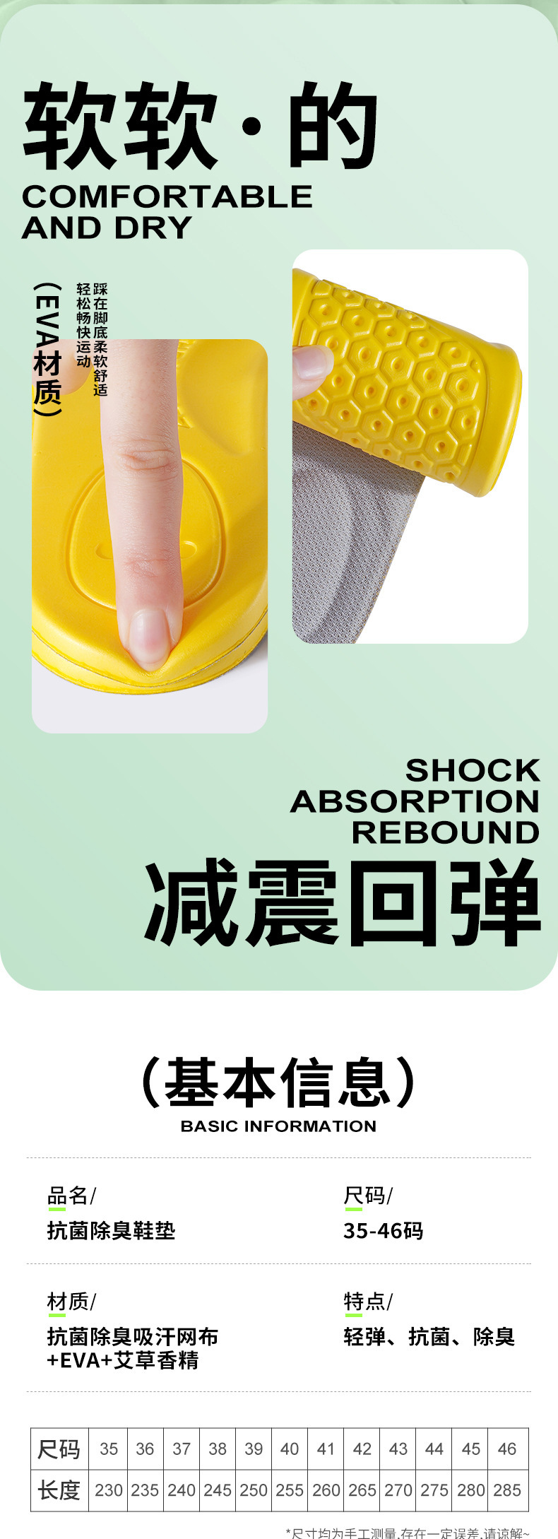 웜우드 항균 탈취제 인솔 탈취제 땀 흡수 통기성 소프트 탄성 충격 흡수 남녀 달리기 스포츠 느낌 운동화스토어 가기
