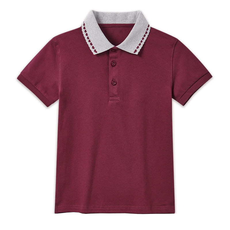 • 스트라이프 칼라 버건디 짧은 소매 8812