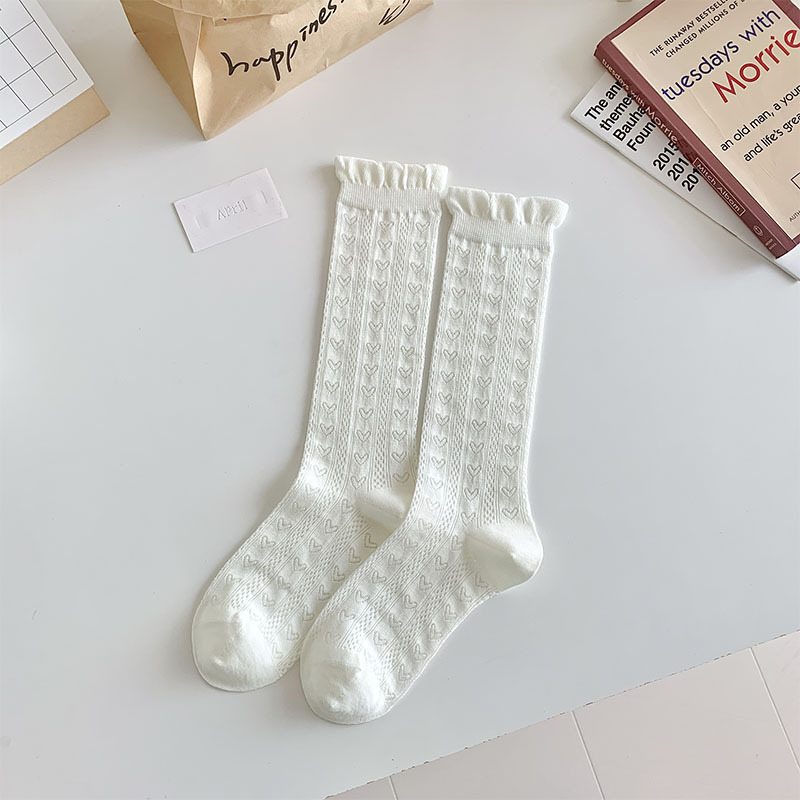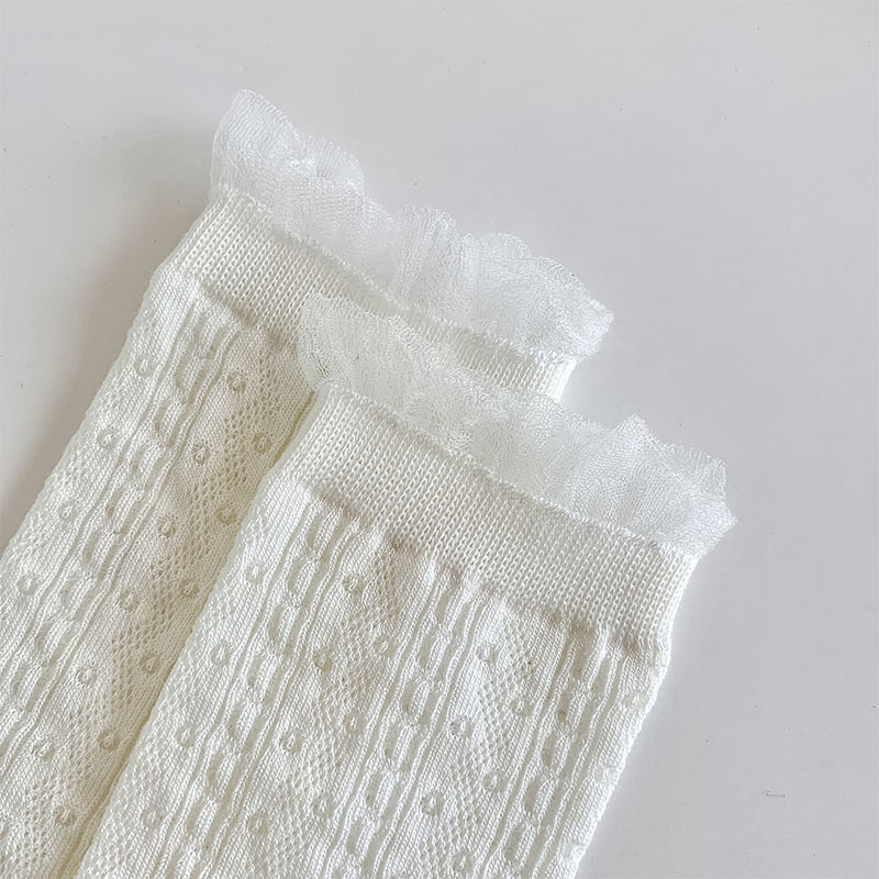 중공 메쉬 양말 여성의 중간 종아리 길이 양말 봄과 여름 얇은 달콤한 거품 레이스 일치하는 작은 가죽 신발 긴 jk 양말