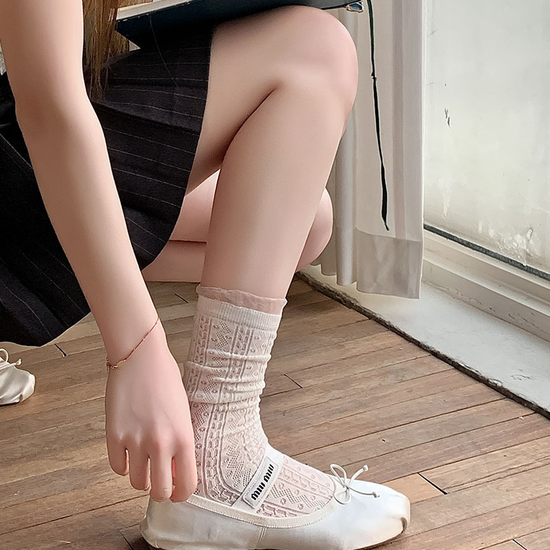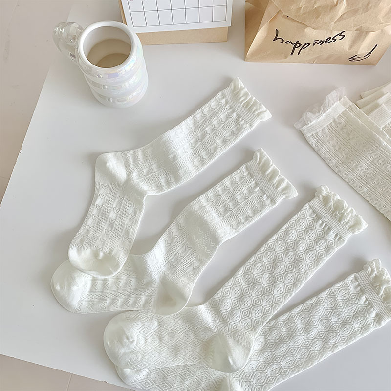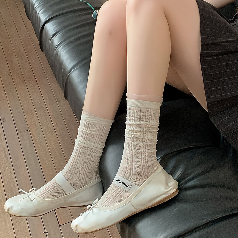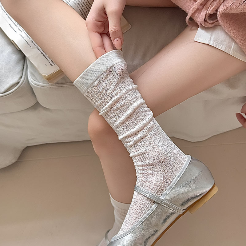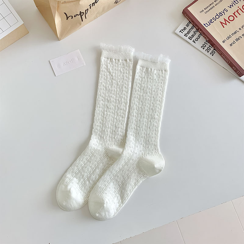 중공 메쉬 양말 여성의 중간 종아리 길이 양말 봄과 여름 얇은 달콤한 거품 레이스 일치하는 작은 가죽 신발 긴 jk 양말스토어 가기