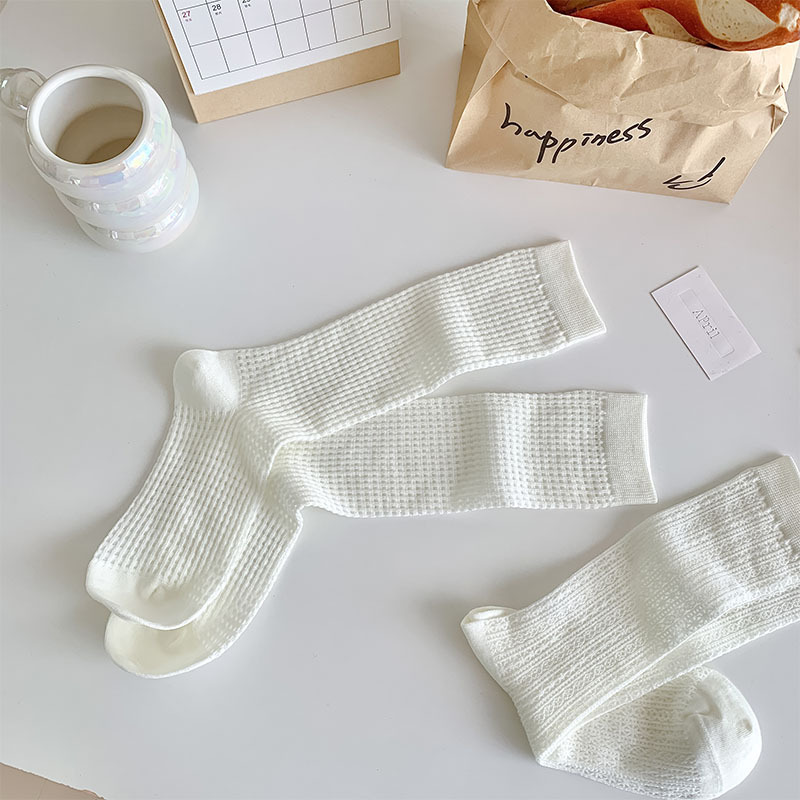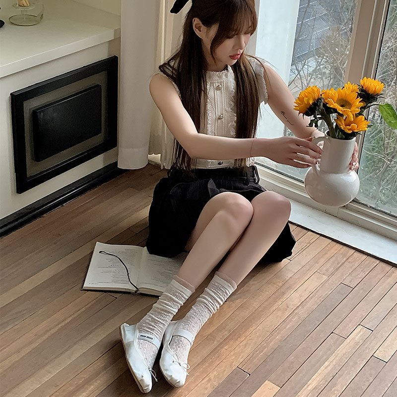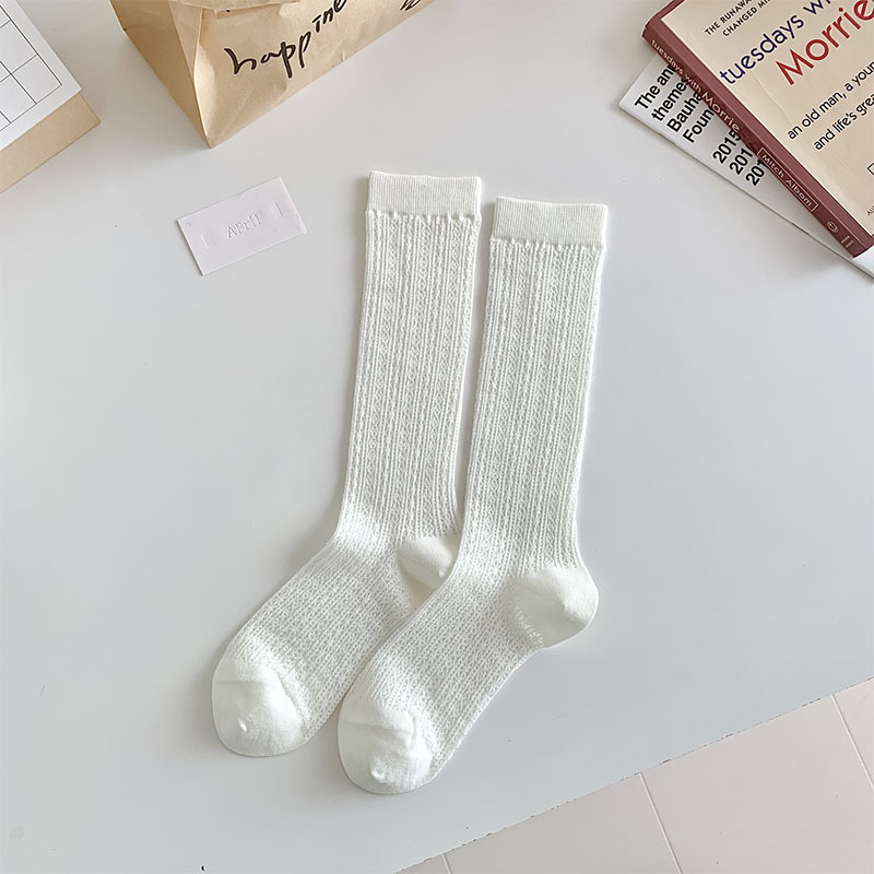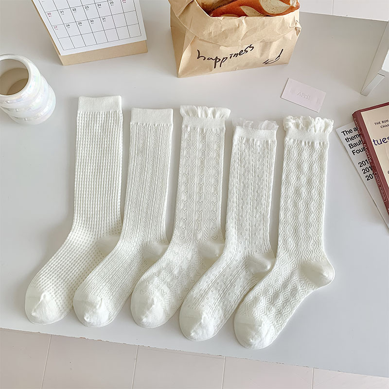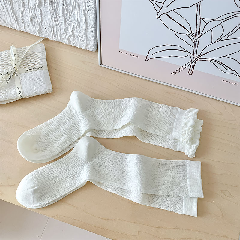 중공 메쉬 양말 여성의 중간 종아리 길이 양말 봄과 여름 얇은 달콤한 거품 레이스 일치하는 작은 가죽 신발 긴 jk 양말스토어 가기