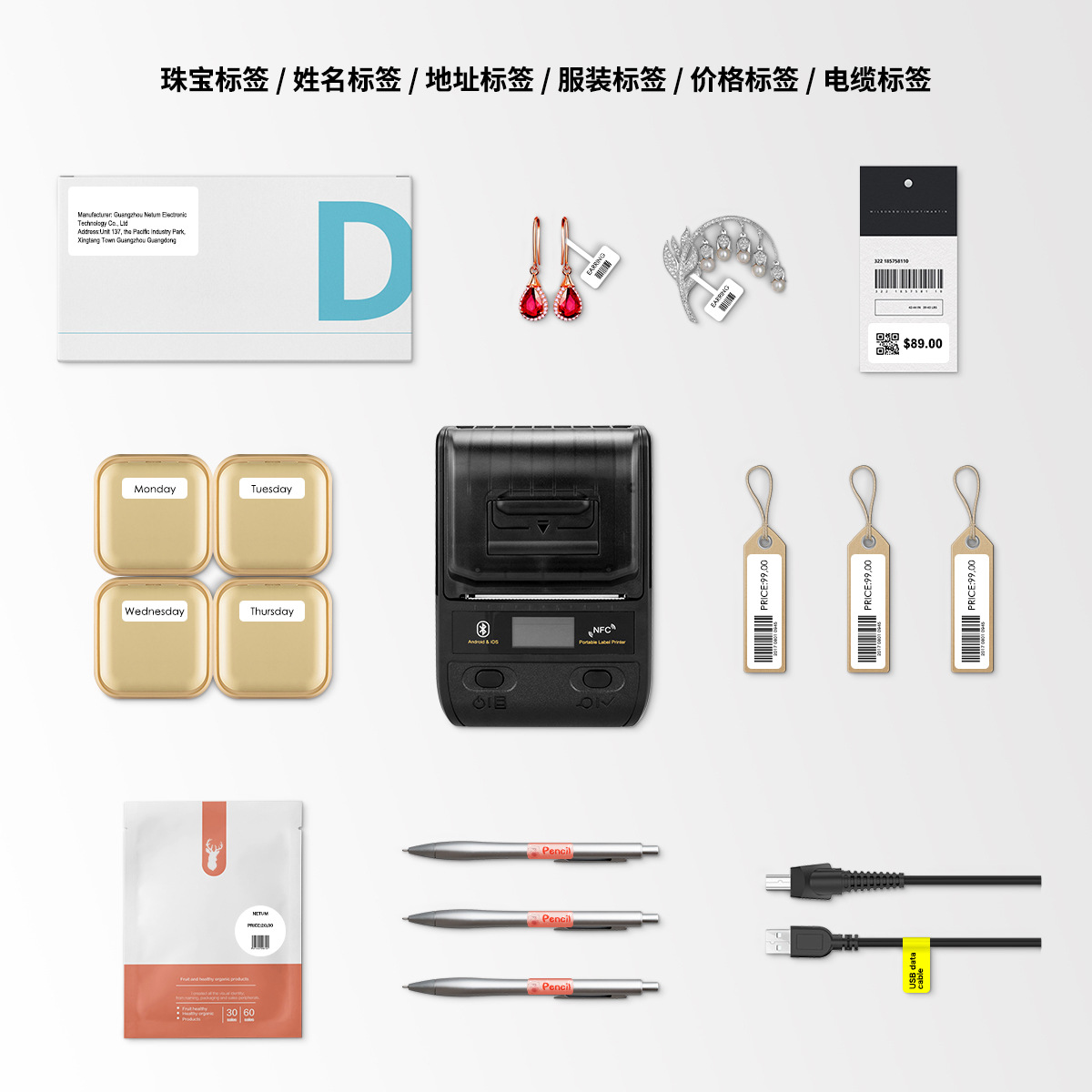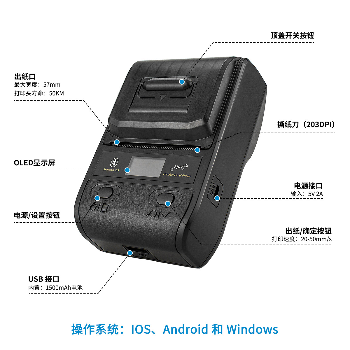 라벨 프린터 휴대용 블루투스 프린터 58mm 열 프린터 작은 80mm 바코드 프린터